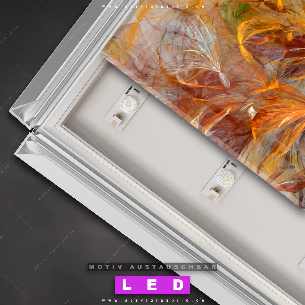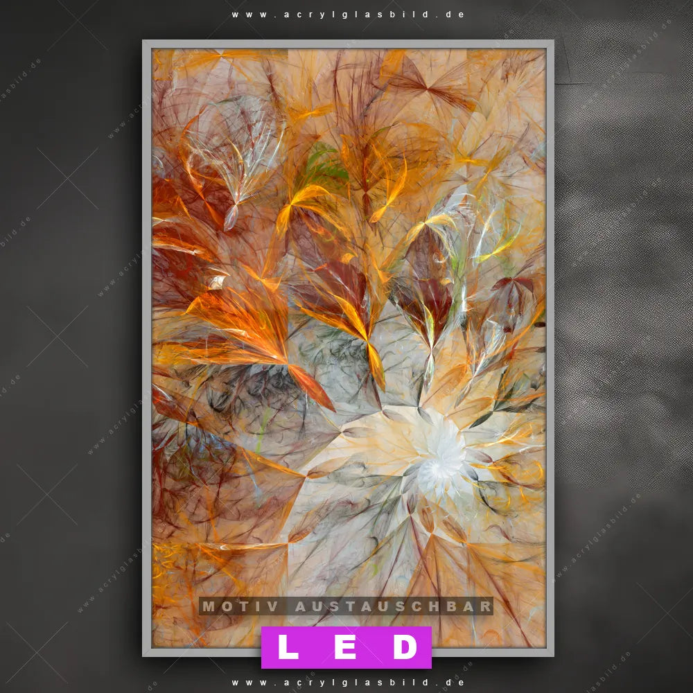 LED Acrylglasbild Canvalight® DIA | Abstrakter Blütenzauber in orange | Hochformat