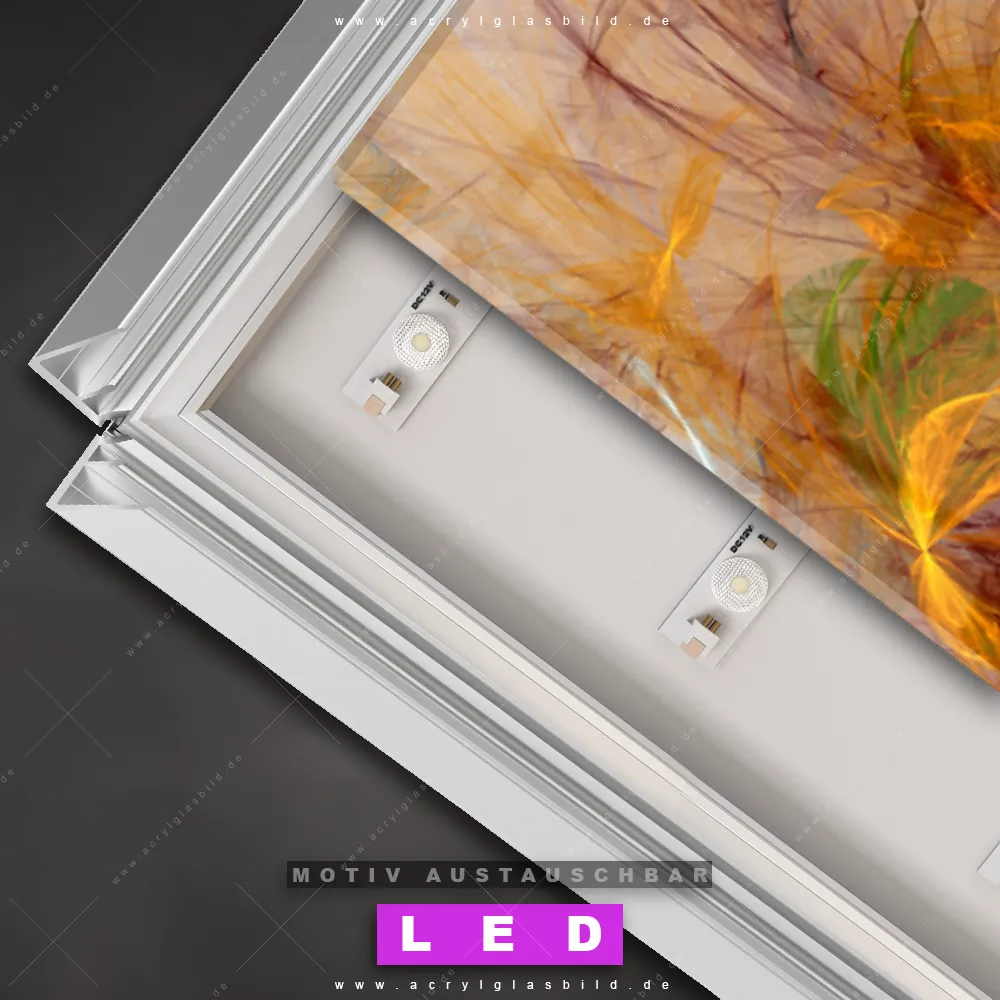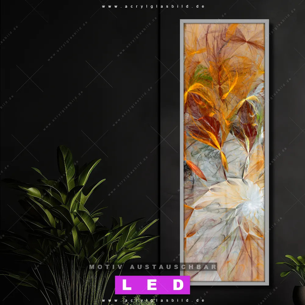 LED Acrylglasbild Canvalight® DIA | Abstrakter Blütenzauber in orange | Schmal