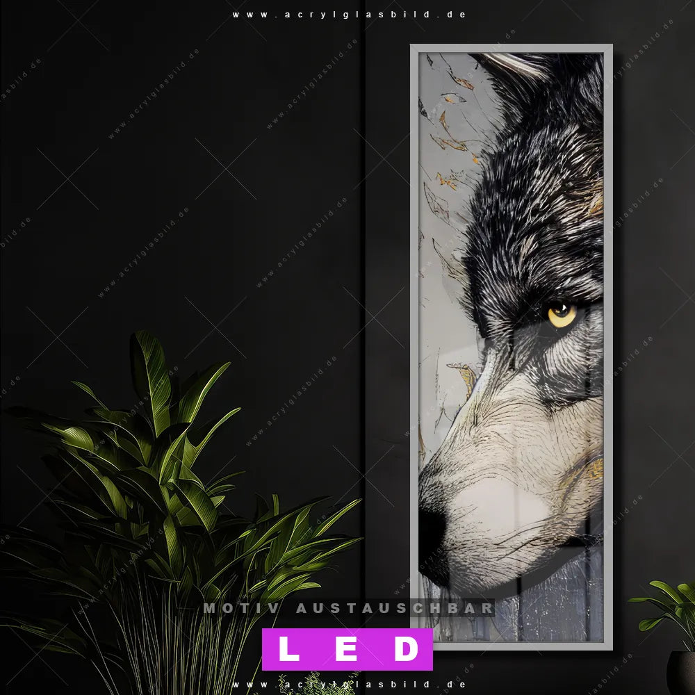 LED Acrylglasbild Canvalight® DIA | Abstrakter Wolf in Gold und Grau | Schmal