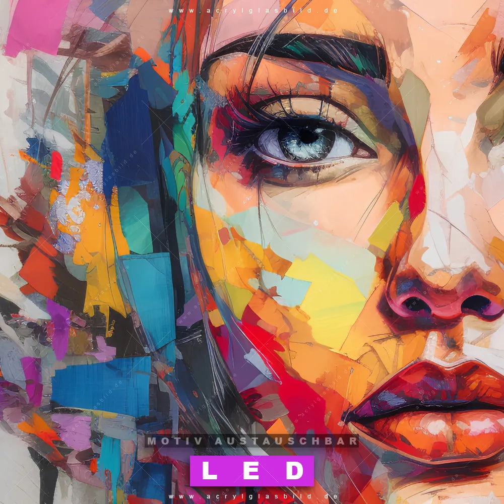 Mit unserem LED Acrylglasbild Canvalight® DIA Bunte abstrakte Schönheit und seiner genialen LED-Ausleuchtung wirst du nie wieder im Dunkeln auf deinem Sofa herumtappen. Wenn du nach einem beleuchteten Wandbild aus Acrylglas mit Kunst, Frau, Portrait, Gesicht, Mädchen, Dame, Acryl, Schönheit, Farbe für Wohnzimmer - Schlafzimmer, Bar - Gastronomie, Friseur - Beauty, Arzt - Praxis, Flur - Eingangsbereich suchst, ist unser LED Leuchtbild Buntes Gesicht einer Frau in den beeindruckenden Motiv-Farben Bunt genau das richtige beleuchtete Wandbild für dich. Gestaltet im Abstrakt, Modern Art Stil, passt dieses LED Wandbild mit DIA-Klapprahmen und glänzender Front aus Acrylglas perfekt zu jedem Einrichtungsstil – sogar zu deinem chaotischen kreativen Durcheinander!