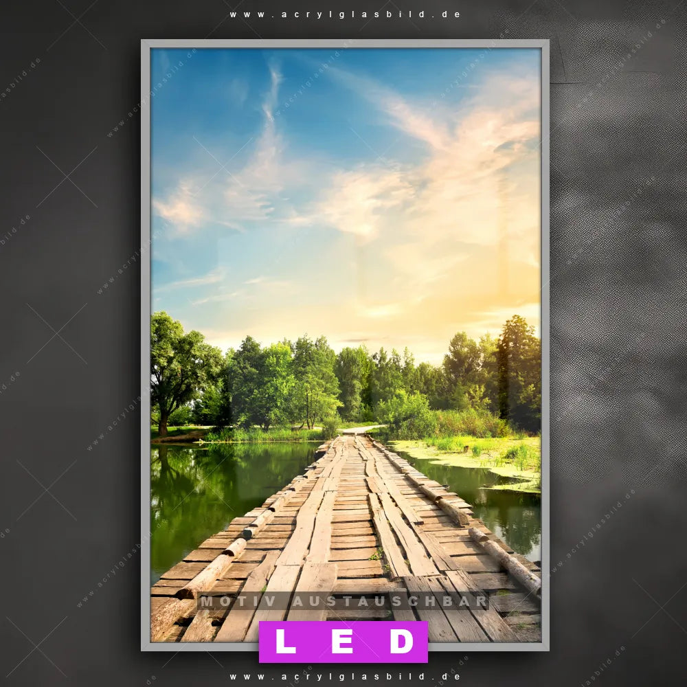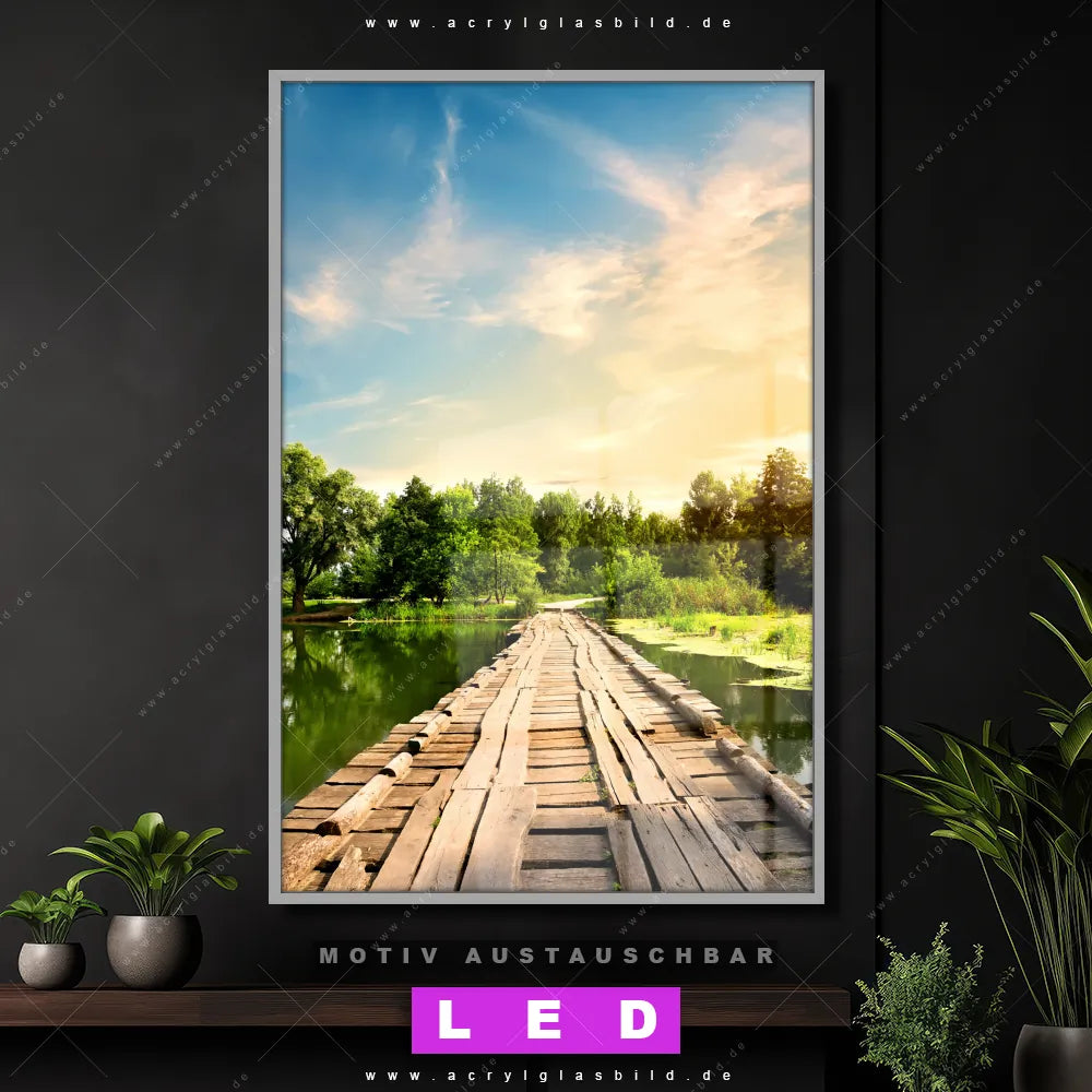 Na, worauf wartest du noch? Mach deine Wände zum Star der Show und bestelle jetzt das Canvalight® DIA LED Acrylglasbild Holzbrücke über fließendem Gewässer. Deine Wände werden es dir danken und deine Freunde werden dank der wechselbaren Motive vor Neid platzen!