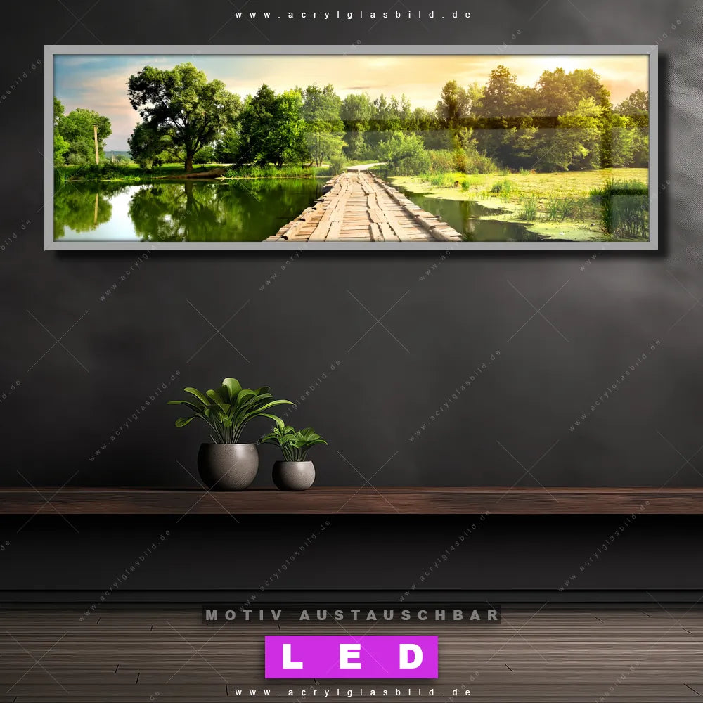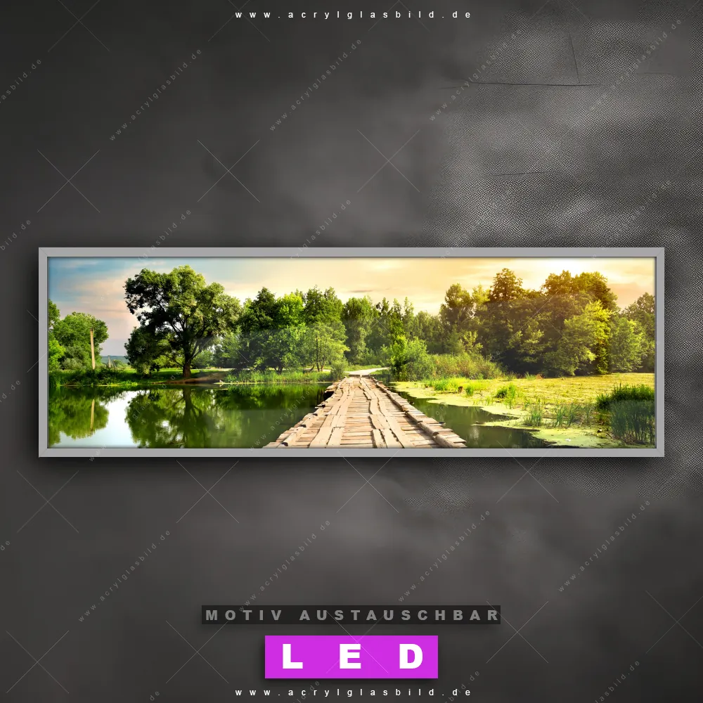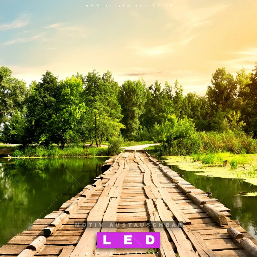 Also, worauf wartest du noch? Verwandle deine Wände mit einem LED Leuchtbild in wahre Kunstwerke und bestelle jetzt das Canvalight® DIA LED Acrylglasbild Holzbrücke über fließendem Gewässer. Deine Wände werden strahlen, und deine Freunde werden dank der wechselbaren Motive staunen!