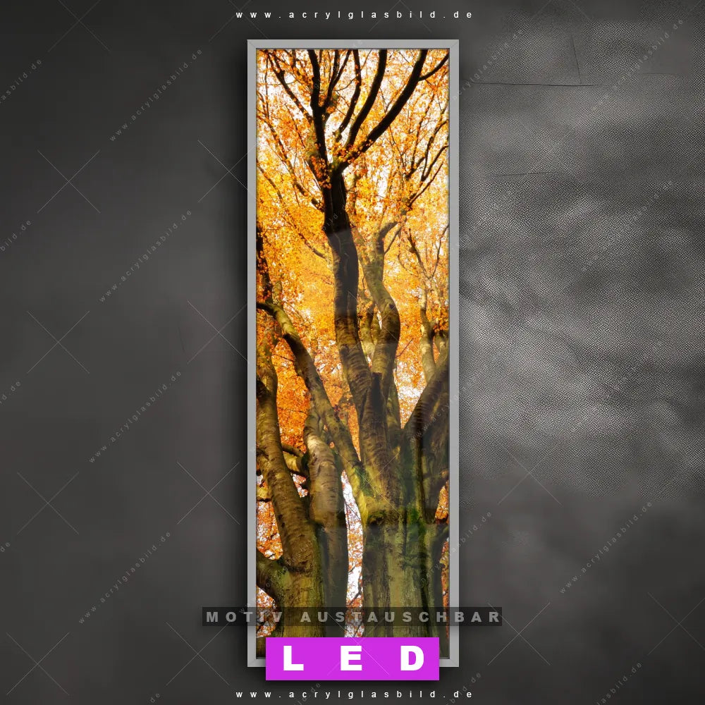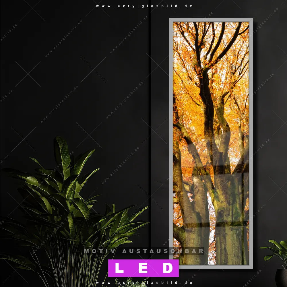 Bist du bereit, deine Wände mit einem dimmbaren LED Bild mit Fernbedienung und optionaler Farbtemperatursteuerung auf das nächste Level zu bringen? Unser Wald - Bäume Canvalight® DIA LED Acrylglasbild ist genau das, was du brauchst! Das Wandbild mit LED Beleuchtung im Schmalen Format mit austauschbarer bedruckter Acrylglas-Scheibe Alte Buche bringt Licht und Stil in dein Zuhause – und das in null Komma nichts!