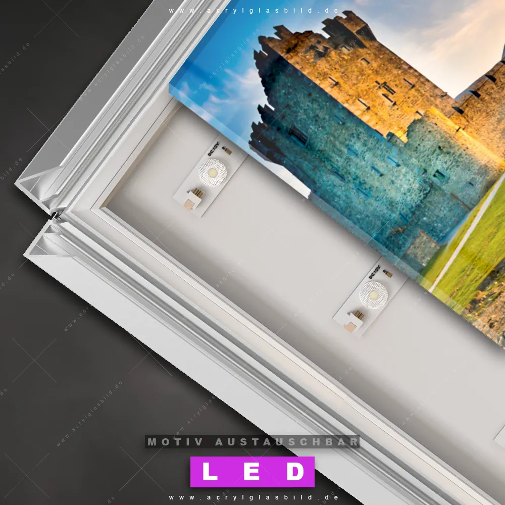 Na, worauf wartest du noch? Mach deine Wände zum Star der Show und bestelle jetzt das Canvalight® DIA LED Acrylglasbild Burgblick bei Sonnenuntergang. Deine Wände werden es dir danken und deine Freunde werden dank der wechselbaren Motive vor Neid platzen!