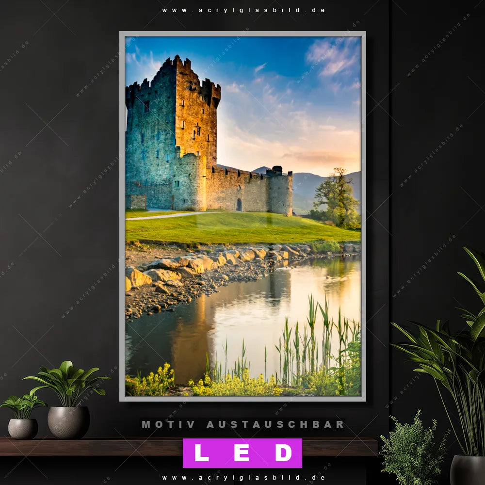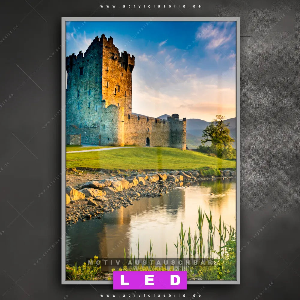 Du suchst nach einem Wandbild mit LED Beleuchtung als ultimativen Hingucker für deine Wände? Dann haben wir das perfekte dimmbare LED Bild mit Fernbedienung und optionaler Farbtemperatursteuerung für dich: unser abgefahrenes Architektur - Gebäude, Landschaften Canvalight® DIA LED Acrylglasbild! Mit dem LED Leuchtbild aus Acrylglas Alte Burg mit See im Hochformat mit austauschbarer bedruckter Acrylglas-Scheibe bringst du nicht nur Licht, sondern auch ordentlich Stil in deine Bude.