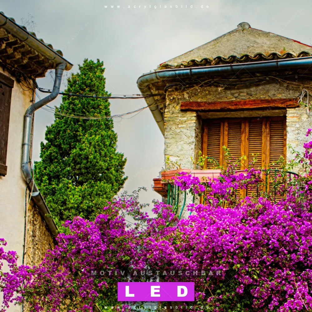 Bist du bereit, deine Wände mit einem dimmbaren LED Bild mit Fernbedienung und optionaler Farbtemperatursteuerung auf das nächste Level zu bringen? Unser Architektur - Gebäude Canvalight® DIA LED Acrylglasbild ist genau das, was du brauchst! Das Wandbild mit LED Beleuchtung im Schmalen Format mit austauschbarer bedruckter Acrylglas-Scheibe Altstadt der Provence bringt Licht und Stil in dein Zuhause – und das in null Komma nichts!