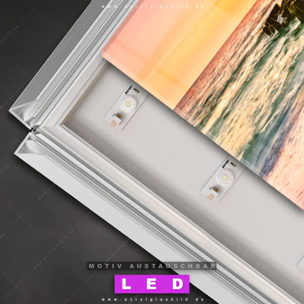 Also, worauf wartest du noch? Verwandle deine Wände mit einem LED Leuchtbild in wahre Kunstwerke und bestelle jetzt das Canvalight® DIA LED Acrylglasbild Holzpfeiler am Strand im Sonnenuntergang. Deine Wände werden strahlen, und deine Freunde werden dank der wechselbaren Motive staunen!