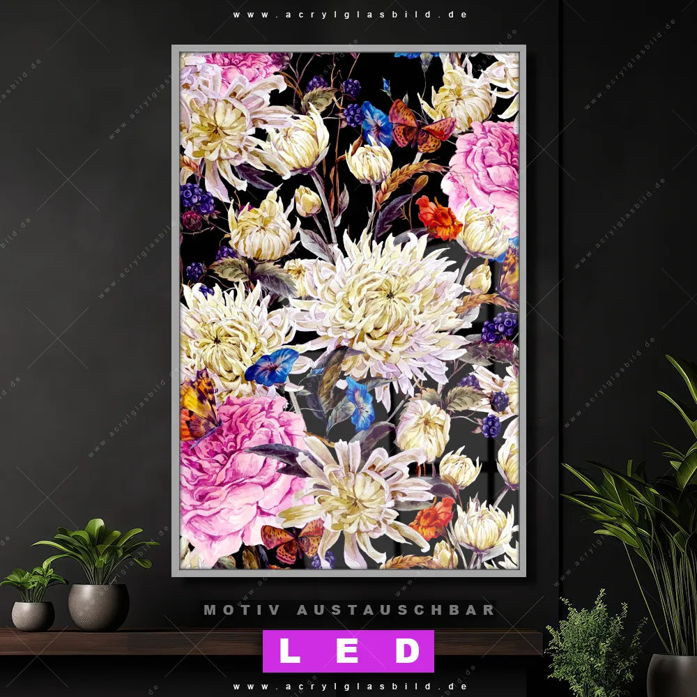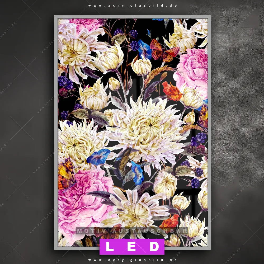 Wer braucht schon langweilige Wände, wenn man sie mit unserem LED Acrylglasbild Canvalight® DIA Wildblumen aufpeppen kann? Dank der genialen LED-Ausleuchtung wirst du in Arzt - Praxis, Wohnzimmer - Schlafzimmer, Friseur - Beauty, Flur - Eingangsbereich nie wieder über deine eigenen Füße stolpern. Wenn du nach einem beleuchteten Wandbild aus Acrylglas mit Blume, Botanik, Pflanze, Natur, Aquarell, Wasserfarbe, Blumen, romantisch, Blüten, Bouquet, Blumenstrauß, Schmetterling suchst, dann ist unser LED Acrylglasbild Blütenvielfalt in den hammermäßigen Motiv-Farben Weiss, Schwarz, Blau, Lila, Orange, Rot, Rosa genau das richtige LED Bild für dich. Im coolen Floral, Retro - Vintage Stil gestaltet, passt das LED Leuchtbild mit DIA-Klapprahmen und glänzender Front aus Acrylglas perfekt zu jedem Einrichtungsstil – sogar zu deinem chaotischen Kreativlabor!