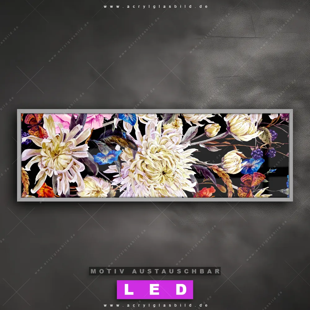 LED Acrylglasbild Canvalight® DIA | Aquarell von wilden Blumen | Panorama