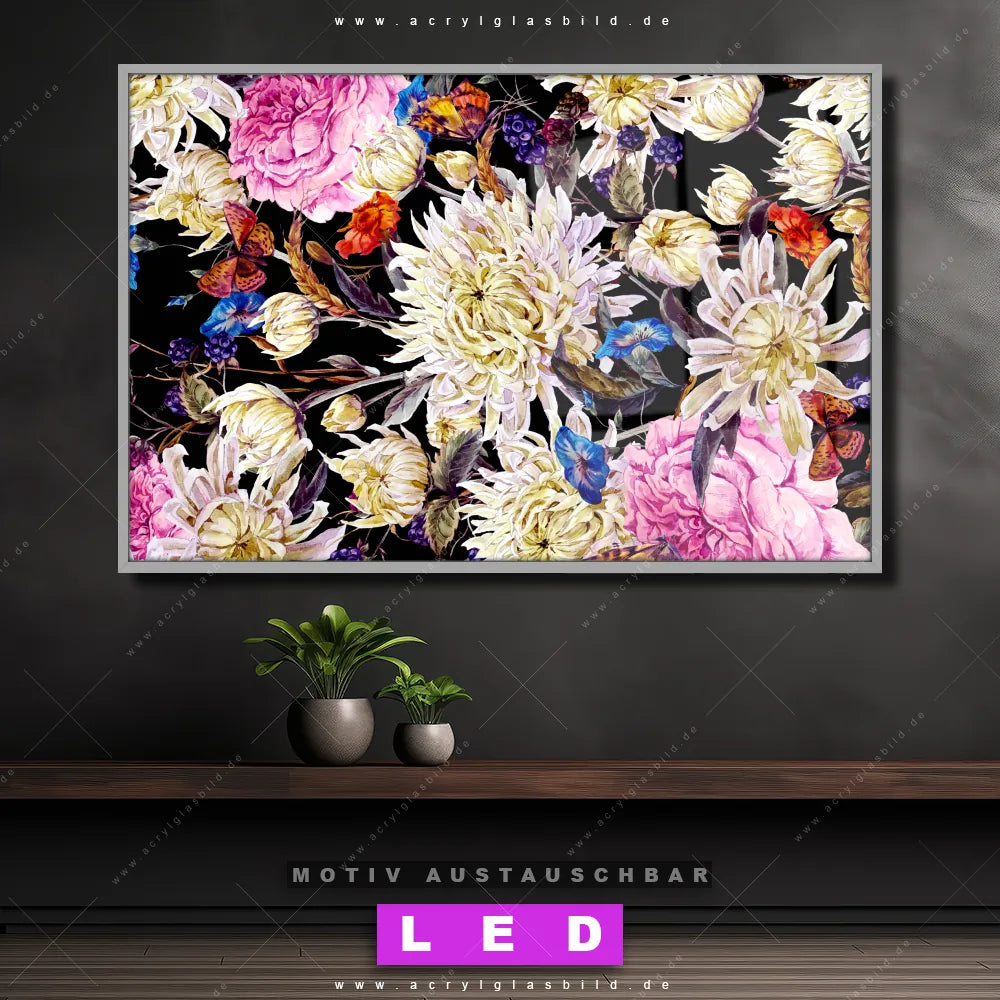 Du bist auf der Suche nach einem dimmbaren Blumen - Botanik LED Bild mit Fernbedienung und optionaler Farbtemperatursteuerung? Dann haben wir hier genau das richtige Wandbild mit LED Beleuchtung für dich: Unser Canvalight® DIA LED Acrylglasbild Aquarell von wilden Blumen im Querformat mit austauschbarer bedruckter Acrylglas-Scheibe. Dieses Leuchtbild bringt sofort Partybeleuchtung in deine Räume!