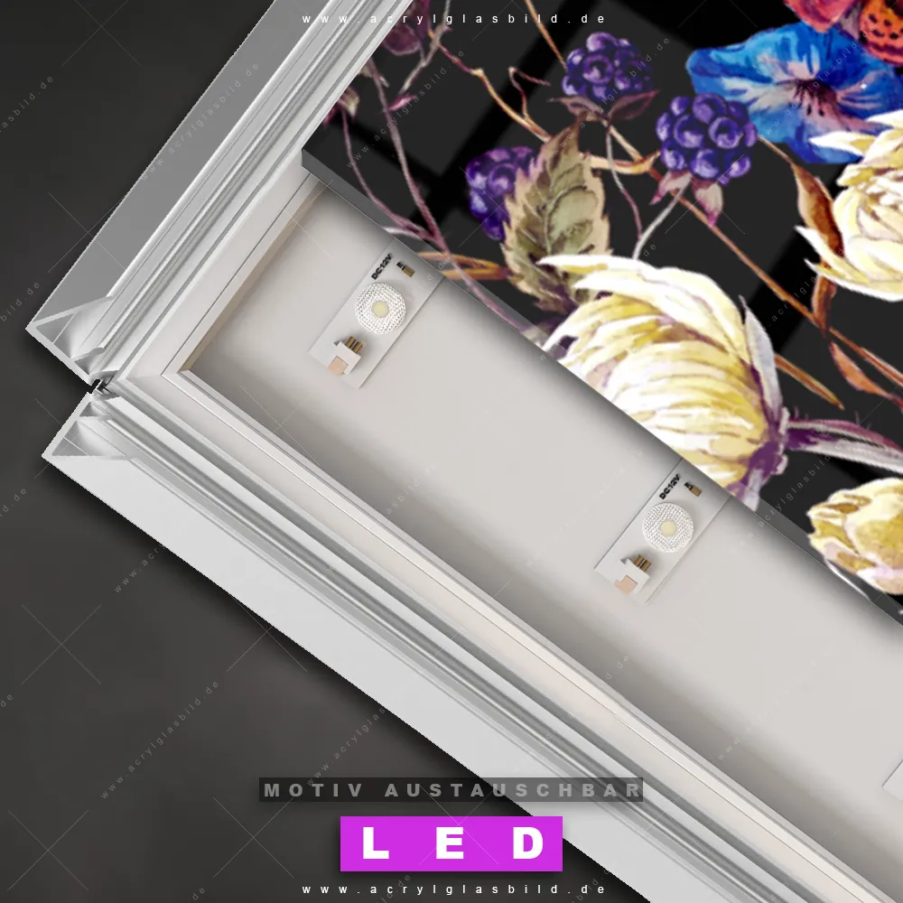 LED Acrylglasbild Canvalight® DIA | Aquarell von wilden Blumen | Schmal