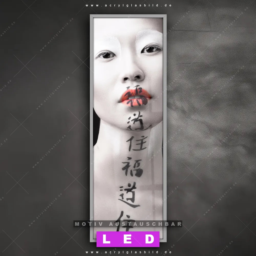 Bist du bereit, deine Wände mit einem dimmbaren LED Bild mit Fernbedienung und optionaler Farbtemperatursteuerung auf das nächste Level zu bringen? Unser Porträts - Menschen Canvalight® DIA LED Acrylglasbild ist genau das, was du brauchst! Das Wandbild mit LED Beleuchtung im Schmalen Format mit austauschbarer bedruckter Acrylglas-Scheibe Asiatische Schönheit bringt Licht und Stil in dein Zuhause – und das in null Komma nichts!