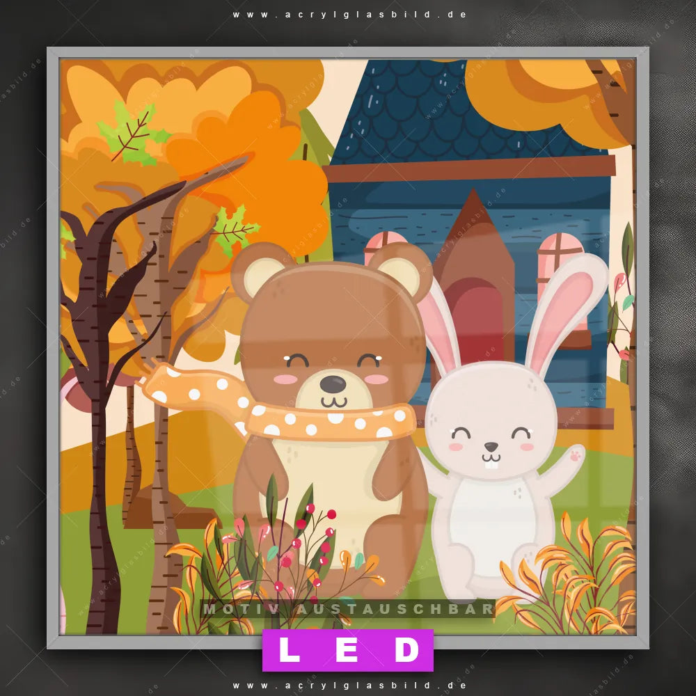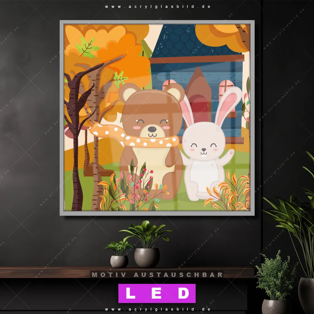 Bist du bereit, deine Wände mit einem dimmbaren LED Bild mit Fernbedienung und optionaler Farbtemperatursteuerung zum Leuchten zu bringen? Wir haben das ultimative Tierwelt LED Acrylglasbild Canvalight® DIA für dich! Unser LED Wandbild aus Acrylglas Bär & Häschen im Quadratischen Format mit austauschbarer bedruckter Acrylglas-Scheibe im DIA-Klapprahmen bringt sofort jede Menge Glanz in deine vier Wände.