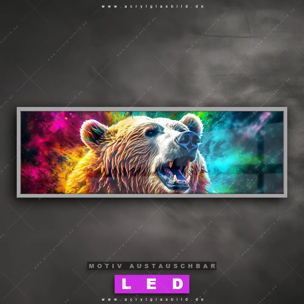 Also, worauf wartest du noch? Verwandle deine Wände mit einem LED Leuchtbild in wahre Kunstwerke und bestelle jetzt das Canvalight® DIA LED Acrylglasbild Abstrakter wilder Bär. Deine Wände werden strahlen, und deine Freunde werden dank der wechselbaren Motive staunen!
