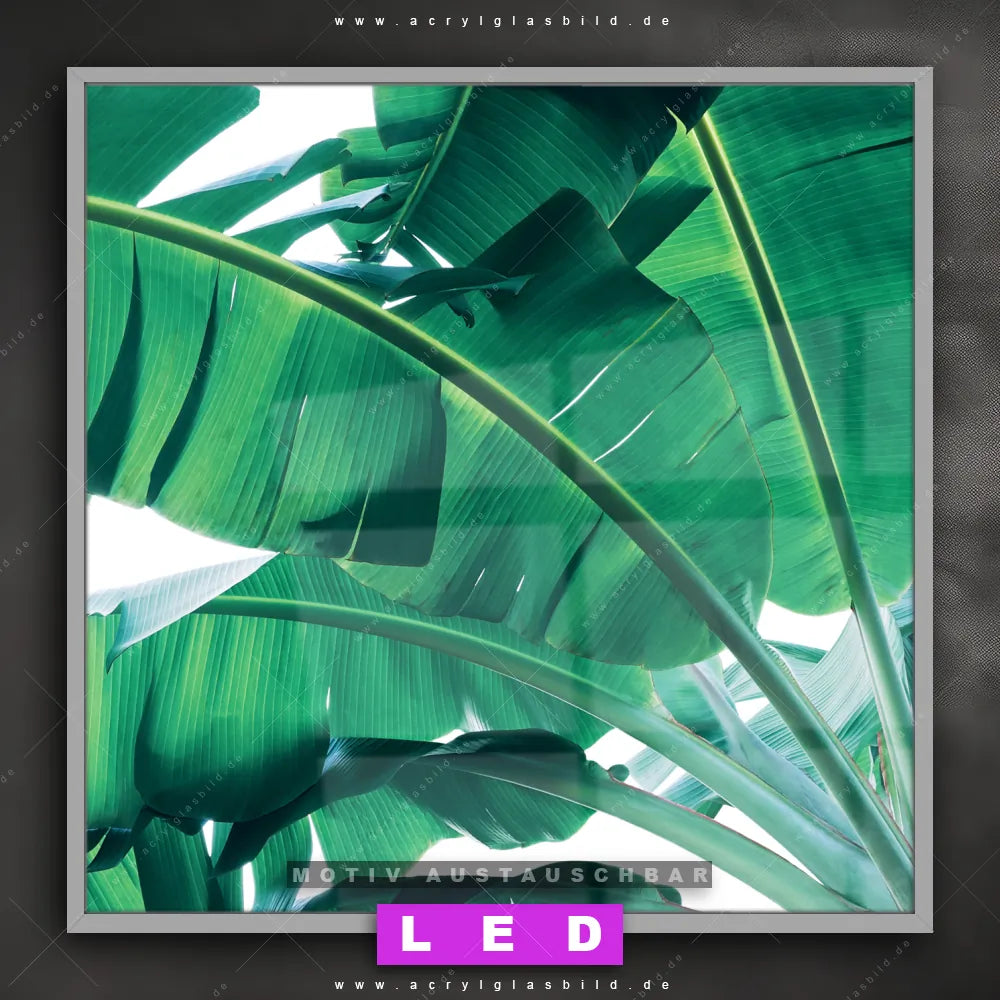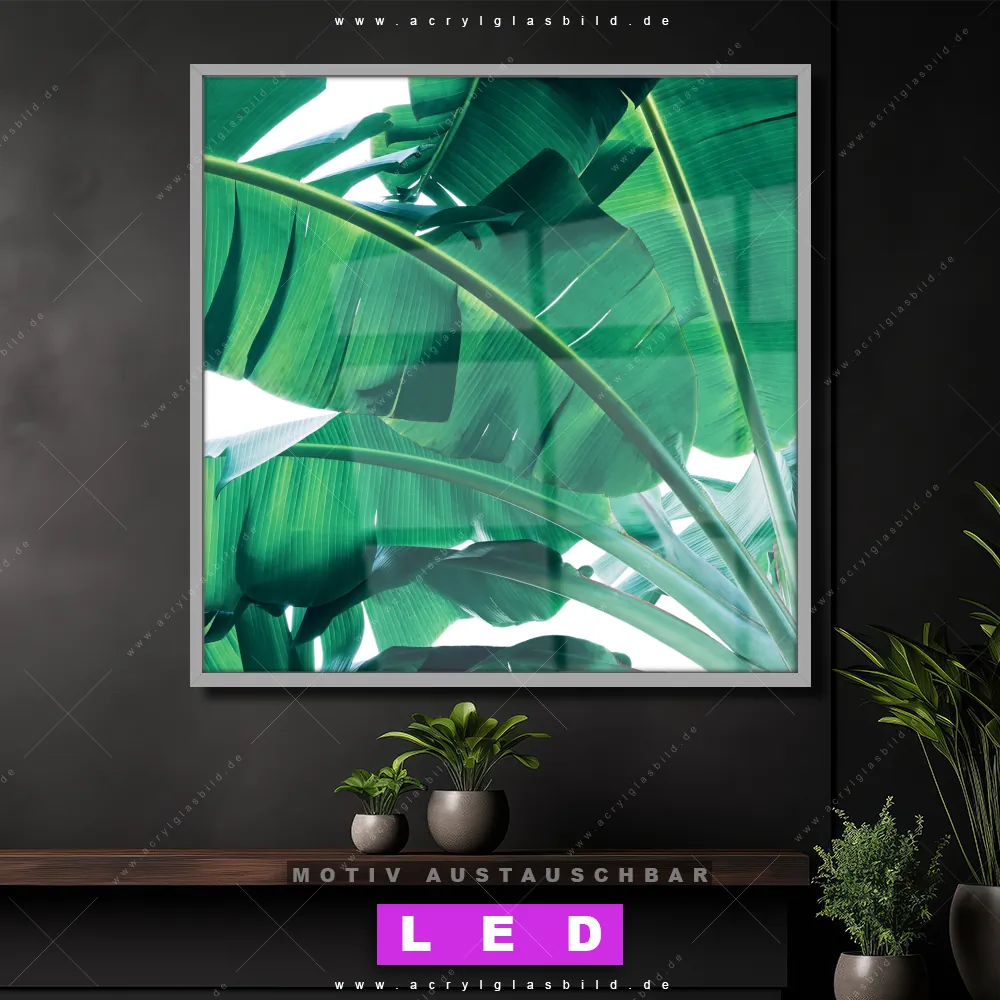 Bist du bereit, deine Wände mit einem dimmbaren LED Bild mit Fernbedienung und optionaler Farbtemperatursteuerung zum Leuchten zu bringen? Wir haben das ultimative Blumen - Botanik LED Acrylglasbild Canvalight® DIA für dich! Unser LED Wandbild aus Acrylglas Bananenpalme im Quadratischen Format mit austauschbarer bedruckter Acrylglas-Scheibe im DIA-Klapprahmen bringt sofort jede Menge Glanz in deine vier Wände.
