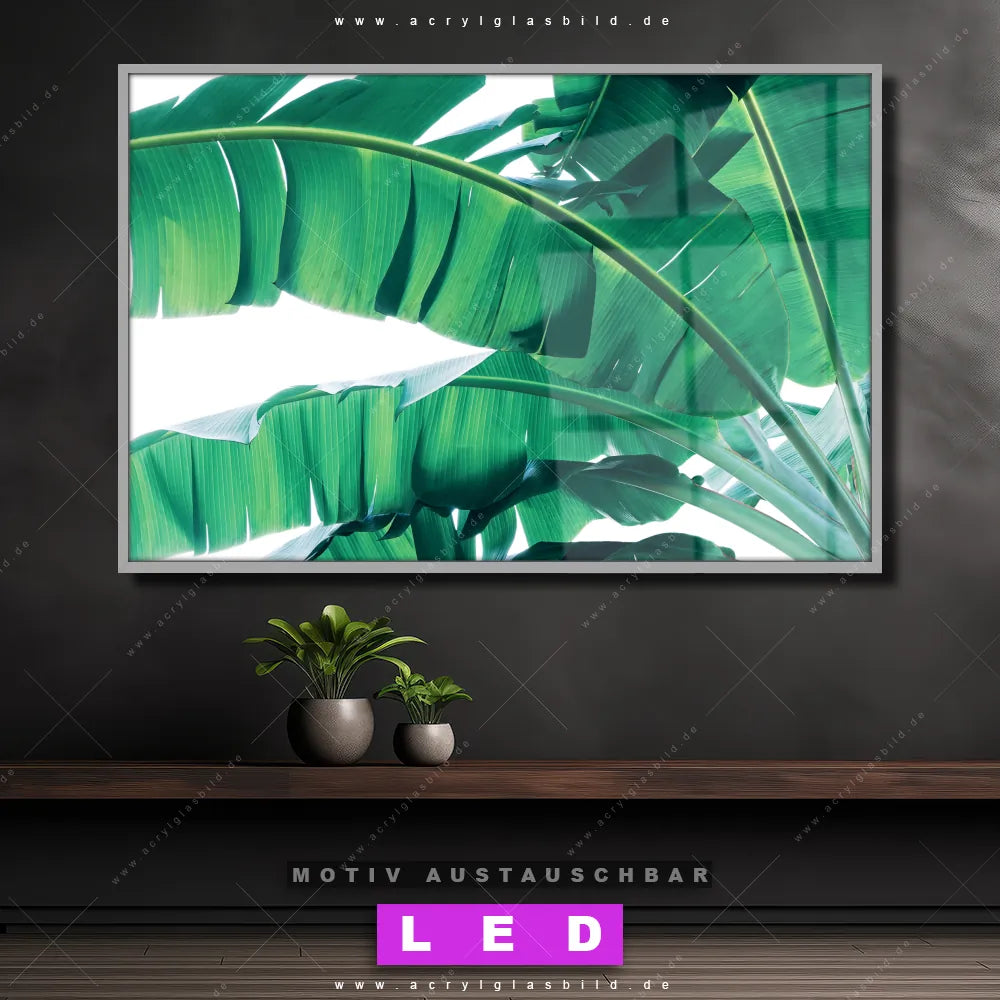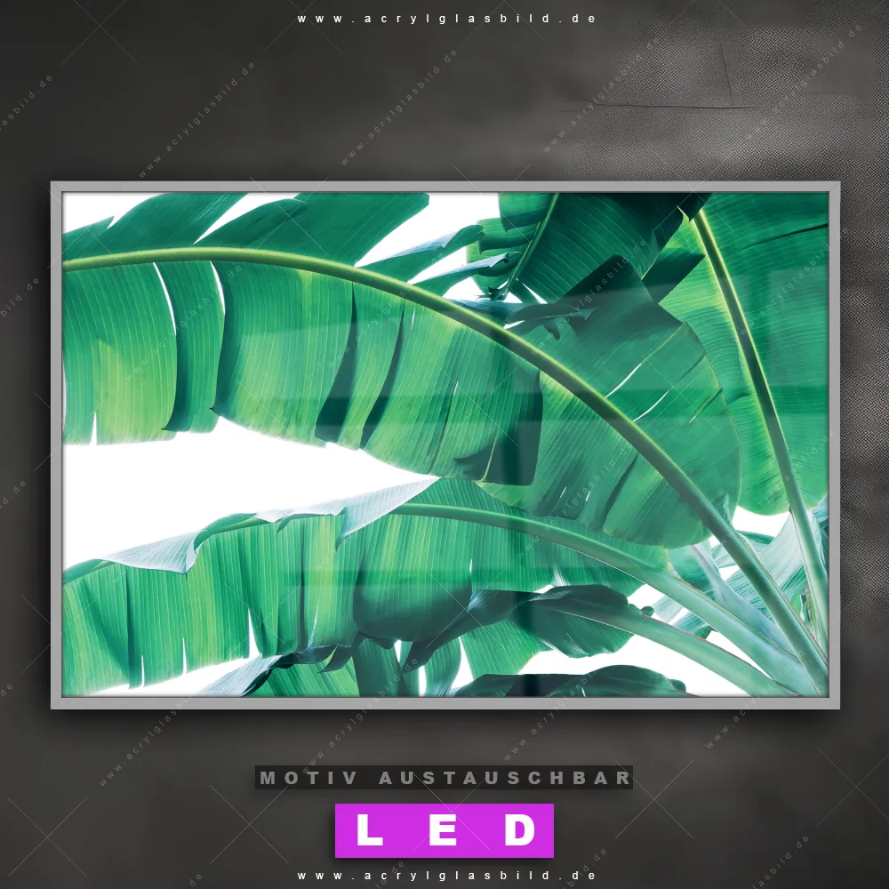 Also, worauf wartest du noch? Gib deinen Wänden den gewissen Wow-Effekt und bestelle jetzt das Canvalight® DIA LED Acrylglasbild Palmblättter einer Bananenpflanze, um ein echtes Highlight an deine Wand zu zaubern!