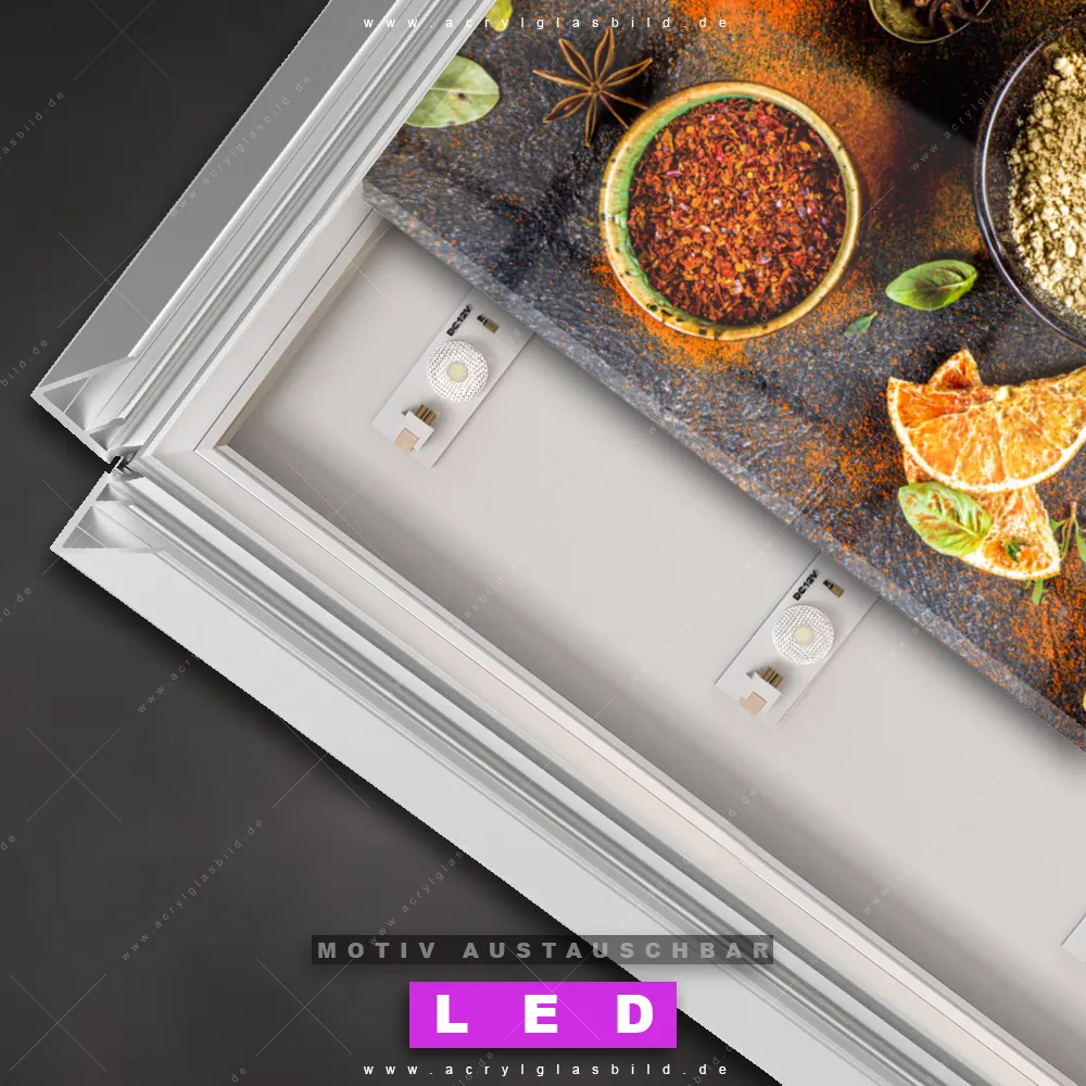 Na, worauf wartest du noch? Mach deine Wände zum Star der Show und bestelle jetzt das Canvalight® DIA LED Acrylglasbild Gewürze und Kräuter auf dunklem Untergrund. Deine Wände werden es dir danken und deine Freunde werden dank der wechselbaren Motive vor Neid platzen!