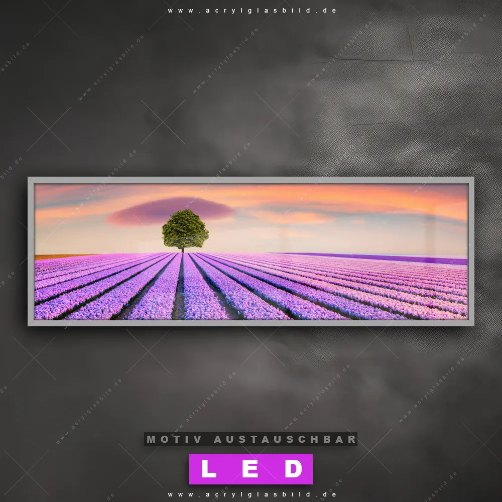Also, worauf wartest du noch? Verwandle deine Wände mit einem LED Leuchtbild in wahre Kunstwerke und bestelle jetzt das Canvalight® DIA LED Acrylglasbild prächtiger Baum im Lavendelfeld. Deine Wände werden strahlen, und deine Freunde werden dank der wechselbaren Motive staunen!