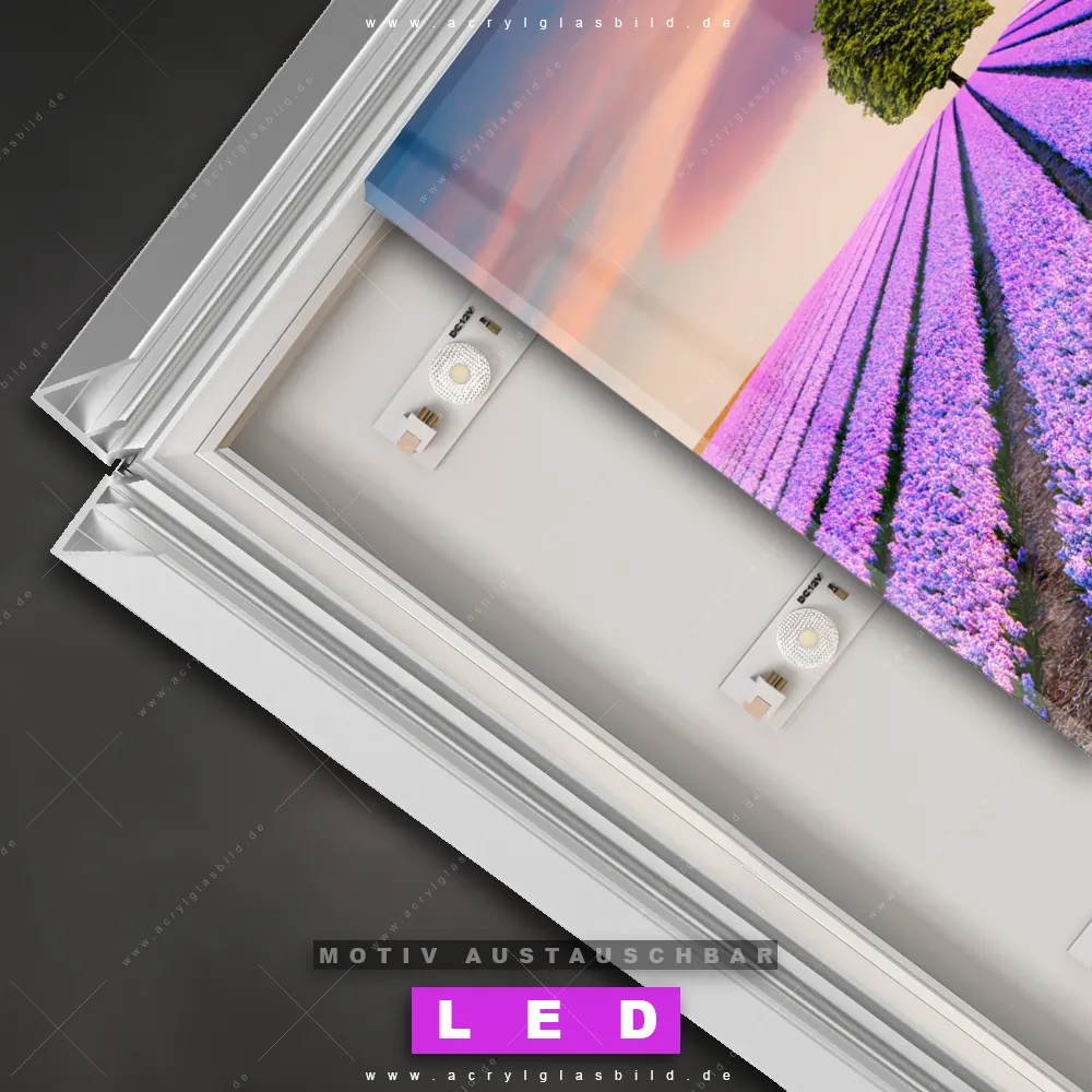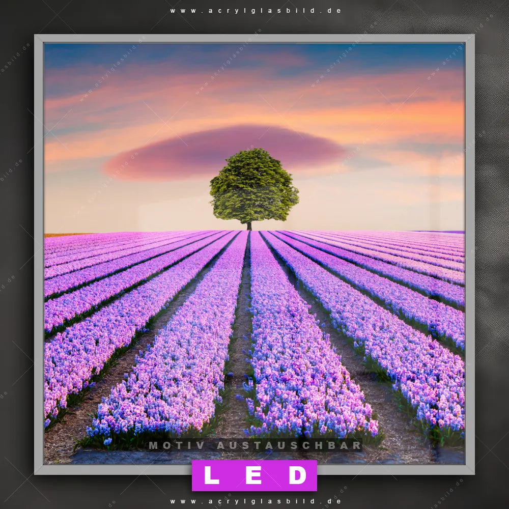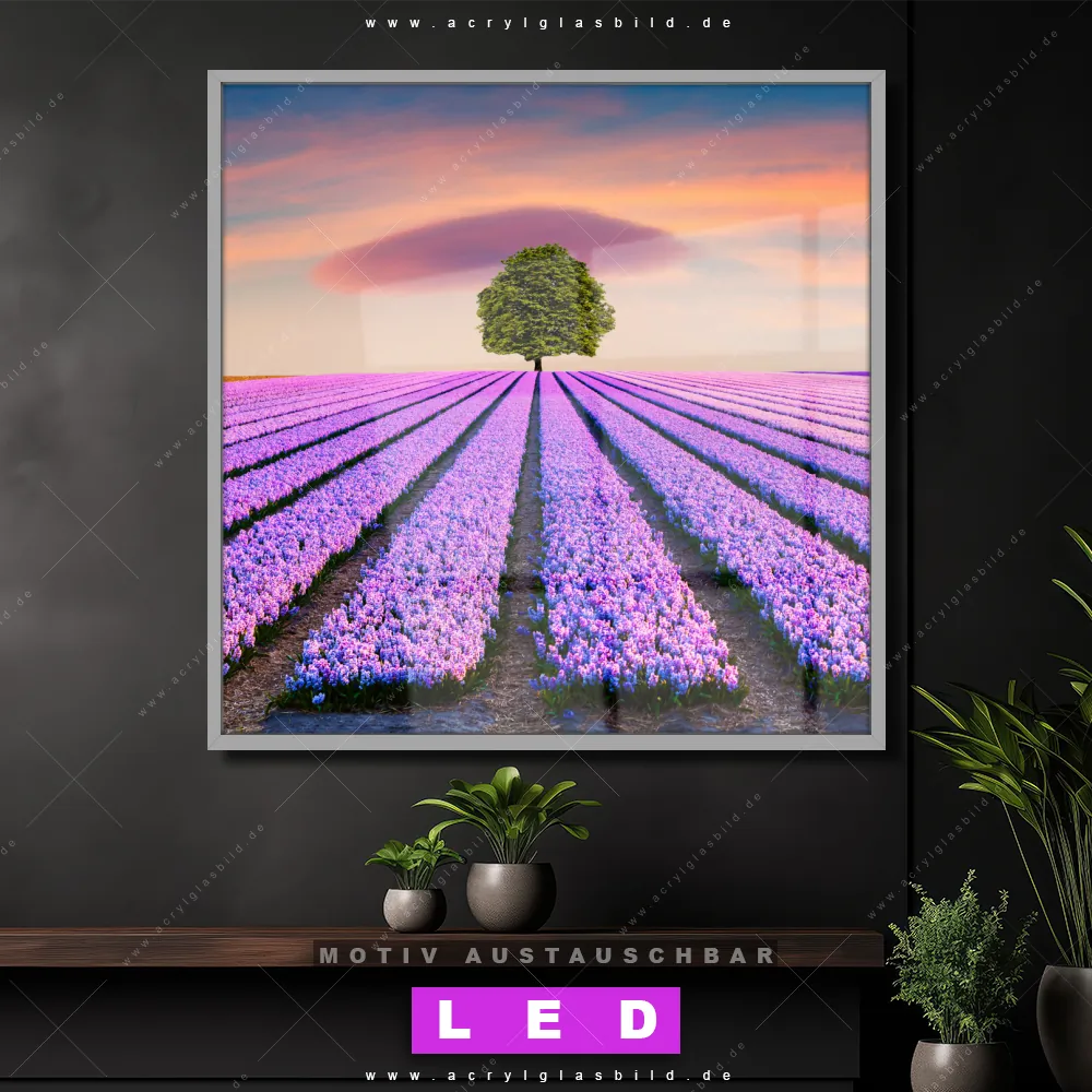 Also, worauf wartest du noch? Gib mit einem beleuchteten Wandbild mit wechselbarer Acrylglas-Scheibe deinen Wänden das gewisse Etwas und bestelle jetzt das LED Acrylglasbild Canvalight® DIA prächtiger Baum im Lavendelfeld – dein Zuhause wird es dir danken und deine Freunde werden dank der wechselbaren Motive erblassen!