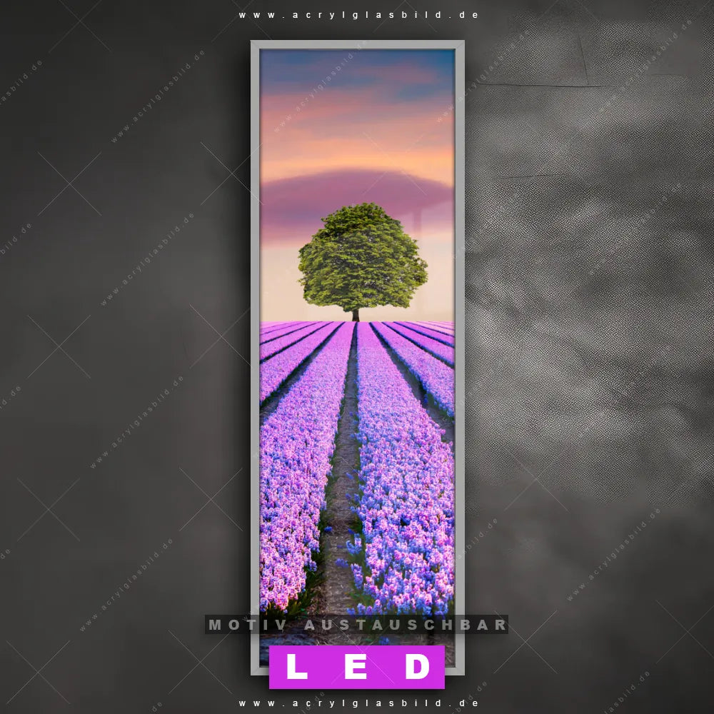 Also, warum noch zögern? Mach deine Wände mit einem Leuchtbild zum absoluten Hingucker und bestelle jetzt das Canvalight® DIA LED Acrylglasbild prächtiger Baum im Lavendelfeld. Deine Wände werden leuchten, und deine Freunde werden dank der wechselbaren Motive beeindruckt sein!