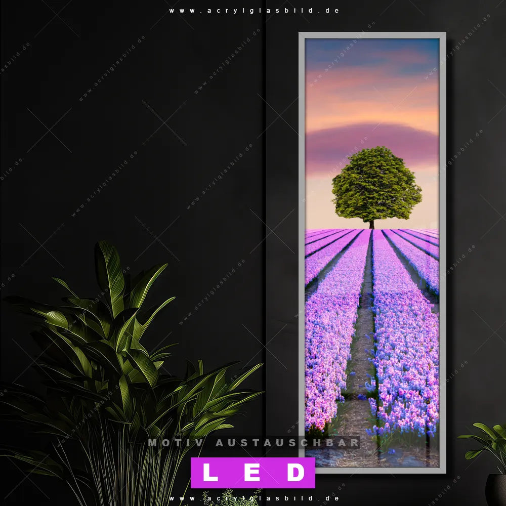 Bist du bereit, deine Wände mit einem dimmbaren LED Bild mit Fernbedienung und optionaler Farbtemperatursteuerung auf das nächste Level zu bringen? Unser Landschaften Canvalight® DIA LED Acrylglasbild ist genau das, was du brauchst! Das Wandbild mit LED Beleuchtung im Schmalen Format mit austauschbarer bedruckter Acrylglas-Scheibe Baum im Blumenfeld bringt Licht und Stil in dein Zuhause – und das in null Komma nichts!