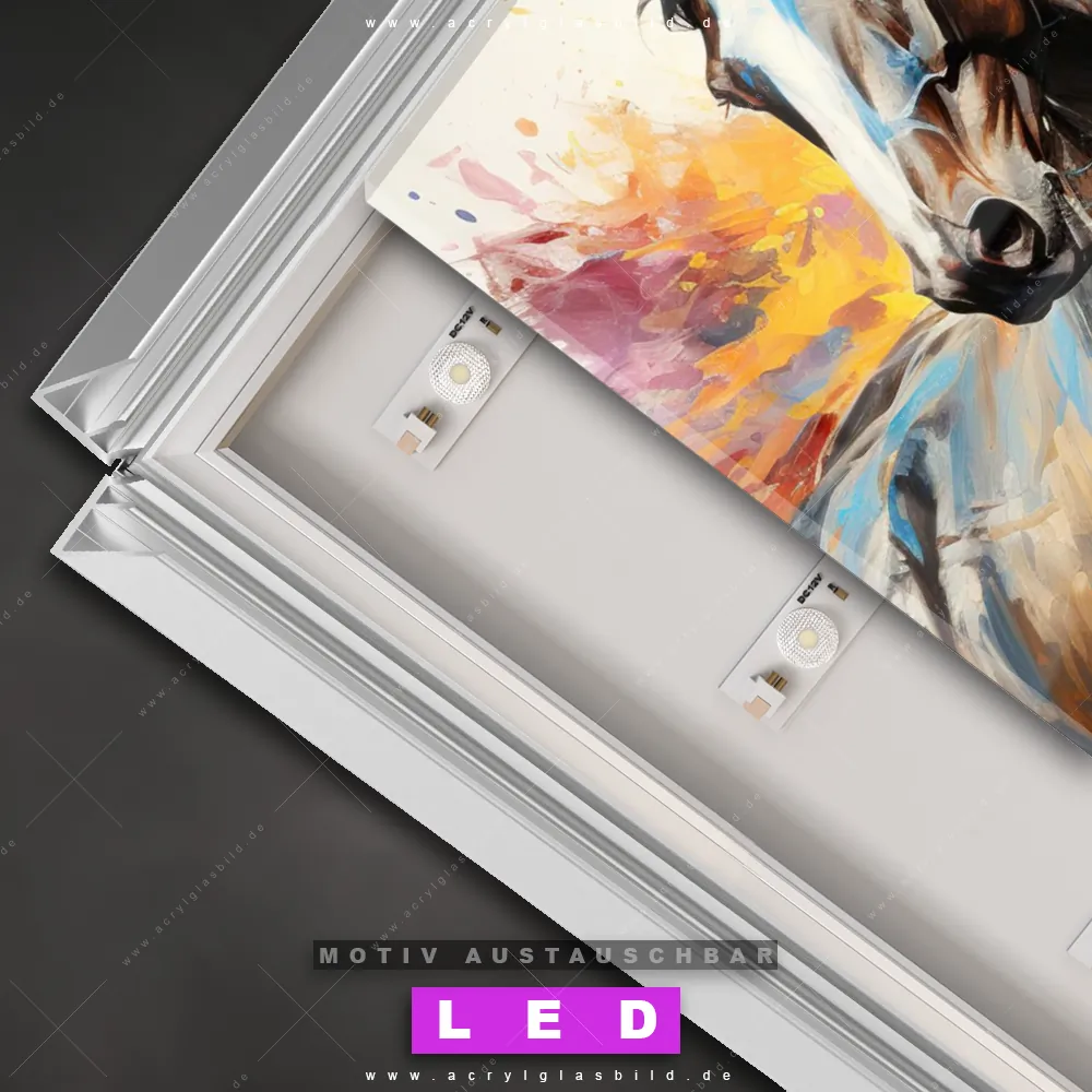 Na, worauf wartest du noch? Mach deine Wände zum Star der Show und bestelle jetzt das Canvalight® DIA LED Acrylglasbild Wilde abstrakte Stute. Deine Wände werden es dir danken und deine Freunde werden dank der wechselbaren Motive vor Neid platzen!
