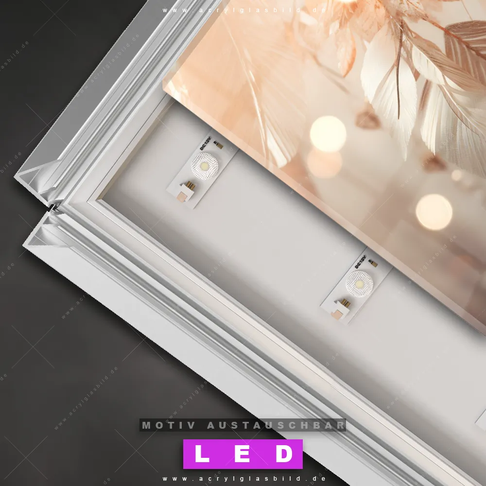 Also, worauf wartest du noch? Gib mit einem beleuchteten Wandbild mit wechselbarer Acrylglas-Scheibe deinen Wänden das gewisse Etwas und bestelle jetzt das LED Acrylglasbild Canvalight® DIA Pflanze im Sonnenschein – dein Zuhause wird es dir danken und deine Freunde werden dank der wechselbaren Motive erblassen!