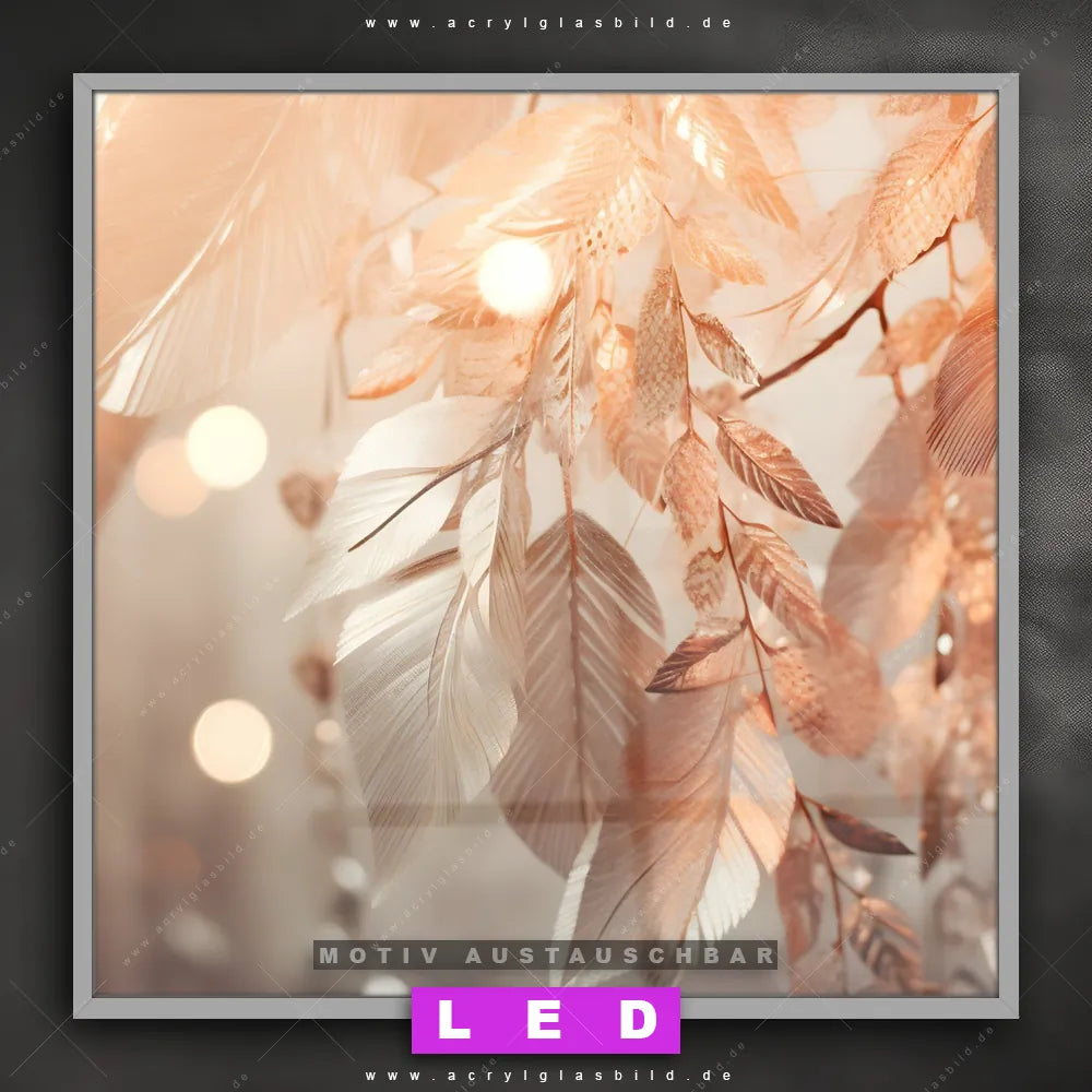 Vergiss dunkle Ecken und Langeweile! Mit unserem Acrylglasbild Goldene Blätter und seiner brillanten LED-Ausleuchtung wirst du dich nie wieder in der Dunkelheit verirren. Wenn du auf der Suche nach einem beleuchteten Wandbild aus Acrylglas mit Blätter, Laub, Sonnenlicht, Nahaufnahme, Close Up, edel bist, ist unser LED Acrylglasbild Canvalight® DIA Herbstliches Blattwerk mit den strahlenden Motiv-Farben Gold, Orange genau das richtige Leuchtbild für dich. Das im Floral, Modern Art Stil gestaltete LED Bild mit glänzender Front aus Acrylglas passt perfekt zu jedem Einrichtungsstil in Flur - Eingangsbereich, Friseur - Beauty, Wohnzimmer - Schlafzimmer – vom minimalistischen Chic bis zum kreativen Chaos.