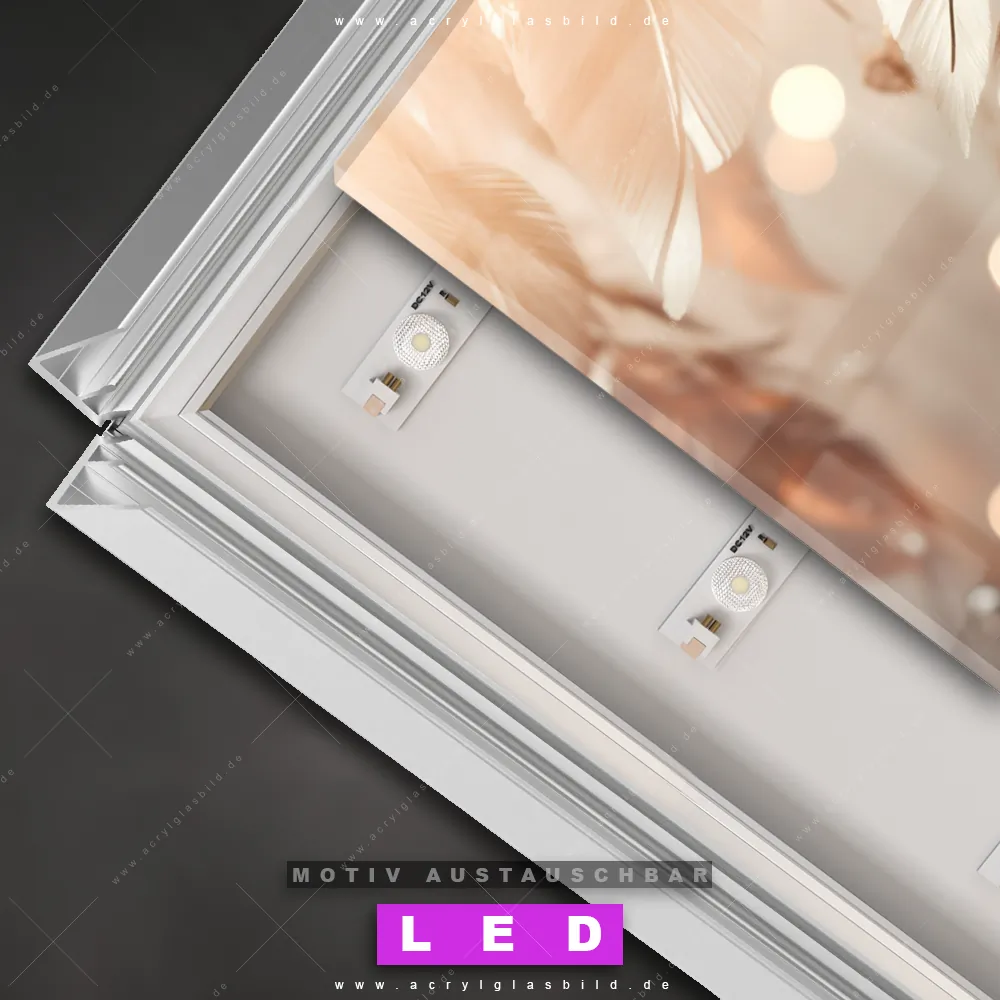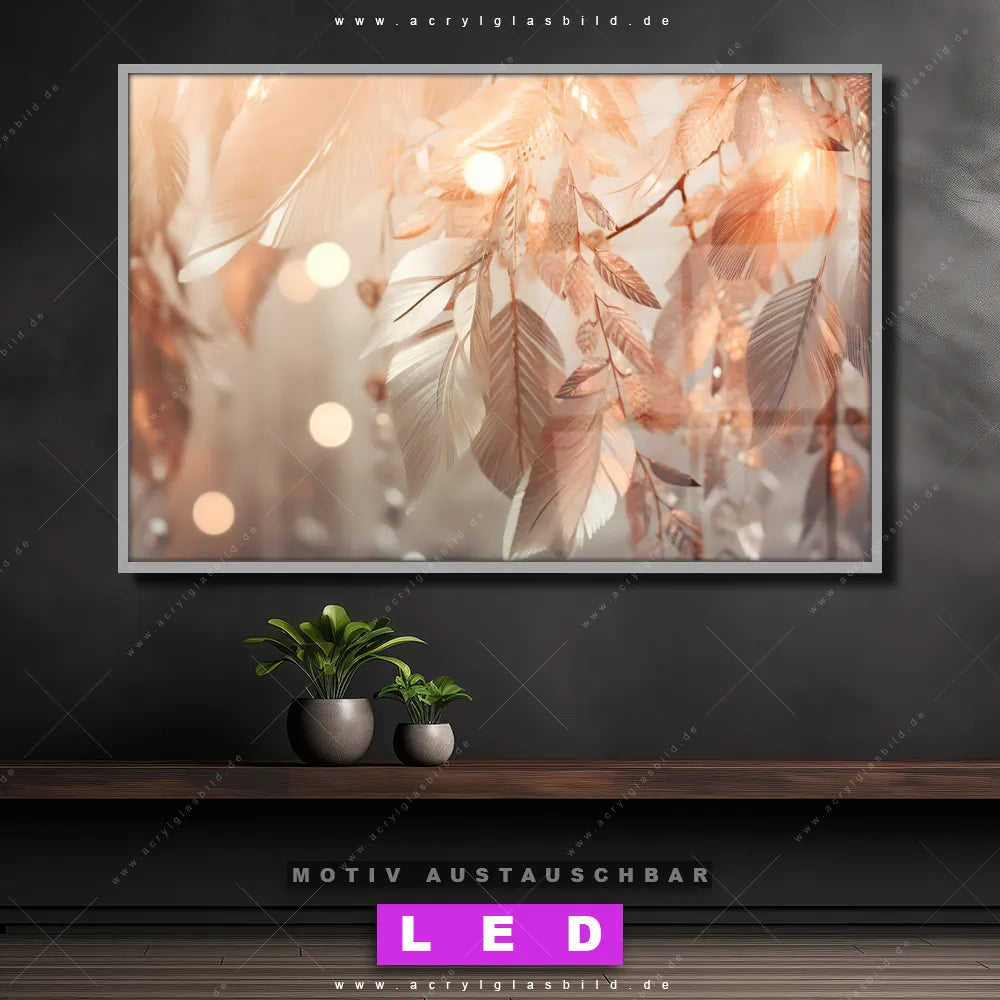 Du bist auf der Suche nach einem dimmbaren Blumen - Botanik LED Bild mit Fernbedienung und optionaler Farbtemperatursteuerung? Dann haben wir hier genau das richtige Wandbild mit LED Beleuchtung für dich: Unser Canvalight® DIA LED Acrylglasbild Blätter im Sonnenlicht im Querformat mit austauschbarer bedruckter Acrylglas-Scheibe. Dieses Leuchtbild bringt sofort Partybeleuchtung in deine Räume!