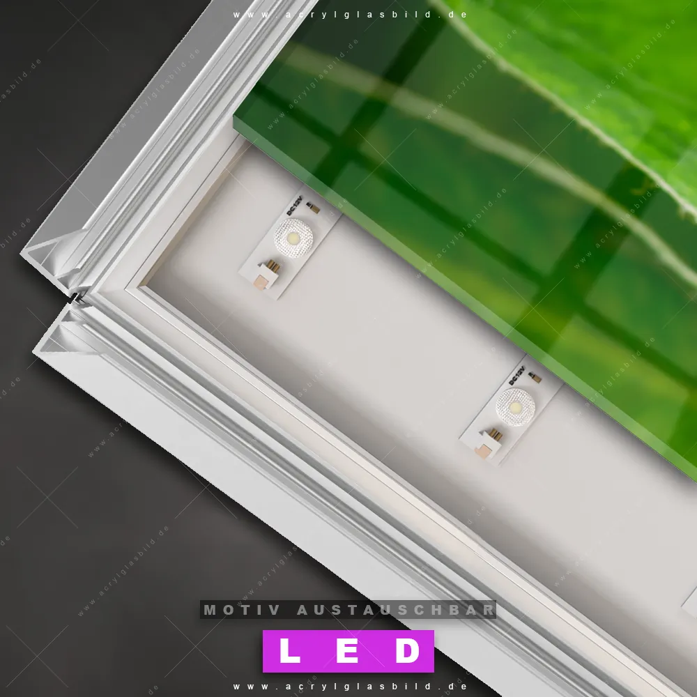 Also, warum noch zögern? Mach deine Wände mit einem Leuchtbild zum absoluten Hingucker und bestelle jetzt das Canvalight® DIA LED Acrylglasbild grüne Blätter mit Tropfen. Deine Wände werden leuchten, und deine Freunde werden dank der wechselbaren Motive beeindruckt sein!