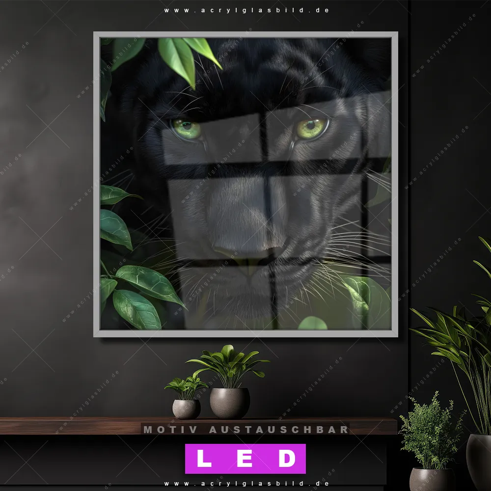 Bist du bereit, deine Wände mit einem dimmbaren LED Bild mit Fernbedienung und optionaler Farbtemperatursteuerung zum Leuchten zu bringen? Wir haben das ultimative Tierwelt, Blumen - Botanik LED Acrylglasbild Canvalight® DIA für dich! Unser LED Wandbild aus Acrylglas Blick des Panthers im Quadratischen Format mit austauschbarer bedruckter Acrylglas-Scheibe im DIA-Klapprahmen bringt sofort jede Menge Glanz in deine vier Wände.