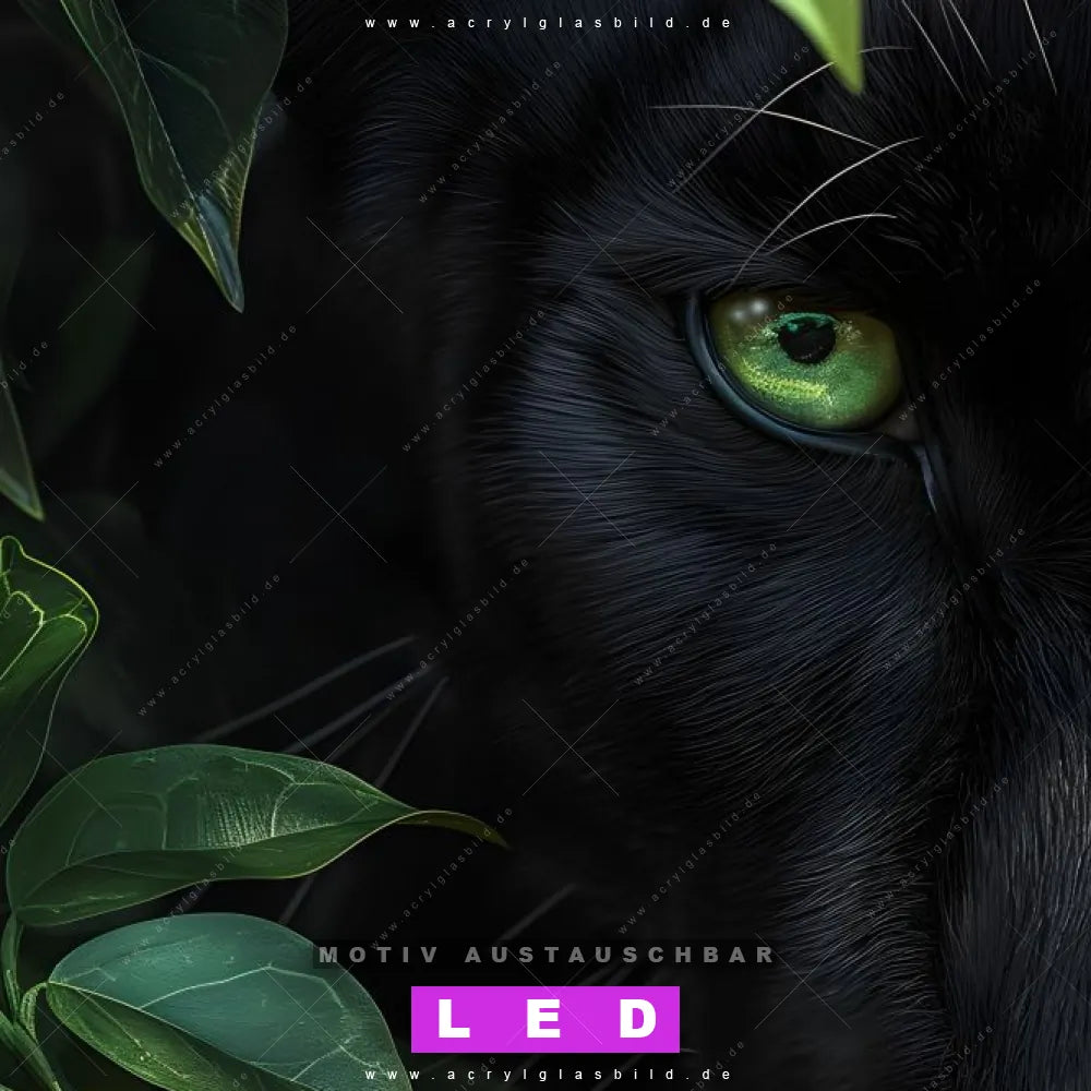 Vergiss dunkle Ecken und Langeweile! Mit unserem Acrylglasbild Grüne Augen des Dschungels und seiner brillanten LED-Ausleuchtung wirst du dich nie wieder in der Dunkelheit verirren. Wenn du auf der Suche nach einem beleuchteten Wandbild aus Acrylglas mit Blätter, Natur, Nahaufnahme, Dschungel, Panther, Raubkatze, Regenwald, Wildkatze, Augen, Tierporträt bist, ist unser LED Acrylglasbild Canvalight® DIA Schwarzer Panther im Regenwald mit den strahlenden Motiv-Farben Schwarz, Grün genau das richtige Leuchtbild für dich. Das im Modern Art, Floral Stil gestaltete LED Bild mit glänzender Front aus Acrylglas passt perfekt zu jedem Einrichtungsstil in Arzt - Praxis, Büro - Kanzlei, Wohnzimmer - Schlafzimmer, Flur - Eingangsbereich – vom minimalistischen Chic bis zum kreativen Chaos.