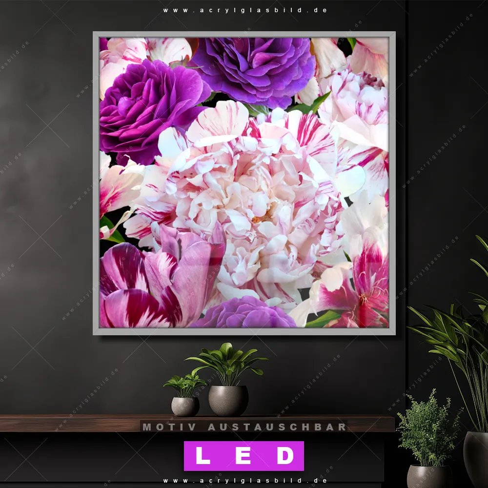 Bist du bereit, deine Wände mit einem dimmbaren LED Bild mit Fernbedienung und optionaler Farbtemperatursteuerung zum Leuchten zu bringen? Wir haben das ultimative Blumen - Botanik LED Acrylglasbild Canvalight® DIA für dich! Unser LED Wandbild aus Acrylglas Blühende Pfingstrosen im Quadratischen Format mit austauschbarer bedruckter Acrylglas-Scheibe im DIA-Klapprahmen bringt sofort jede Menge Glanz in deine vier Wände.