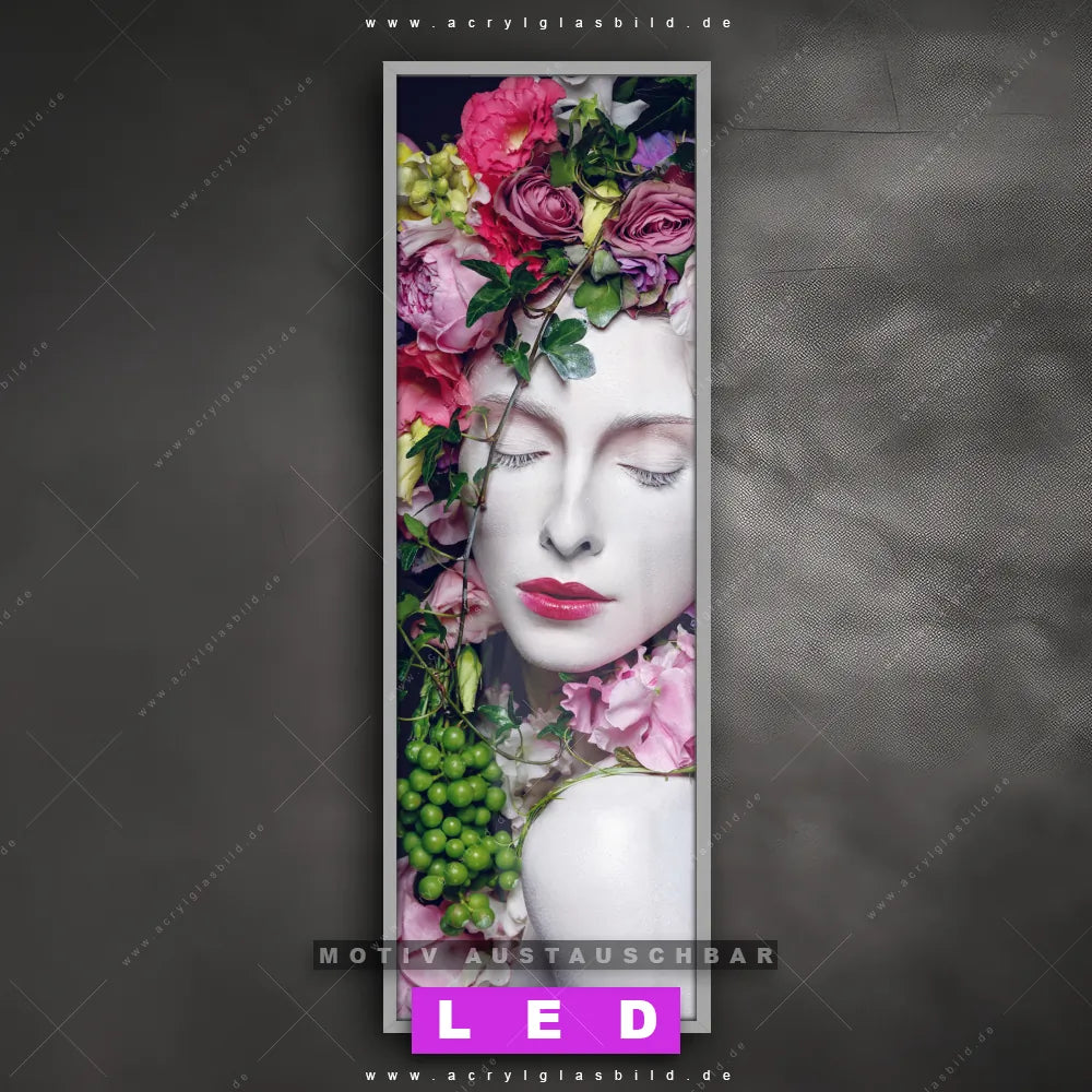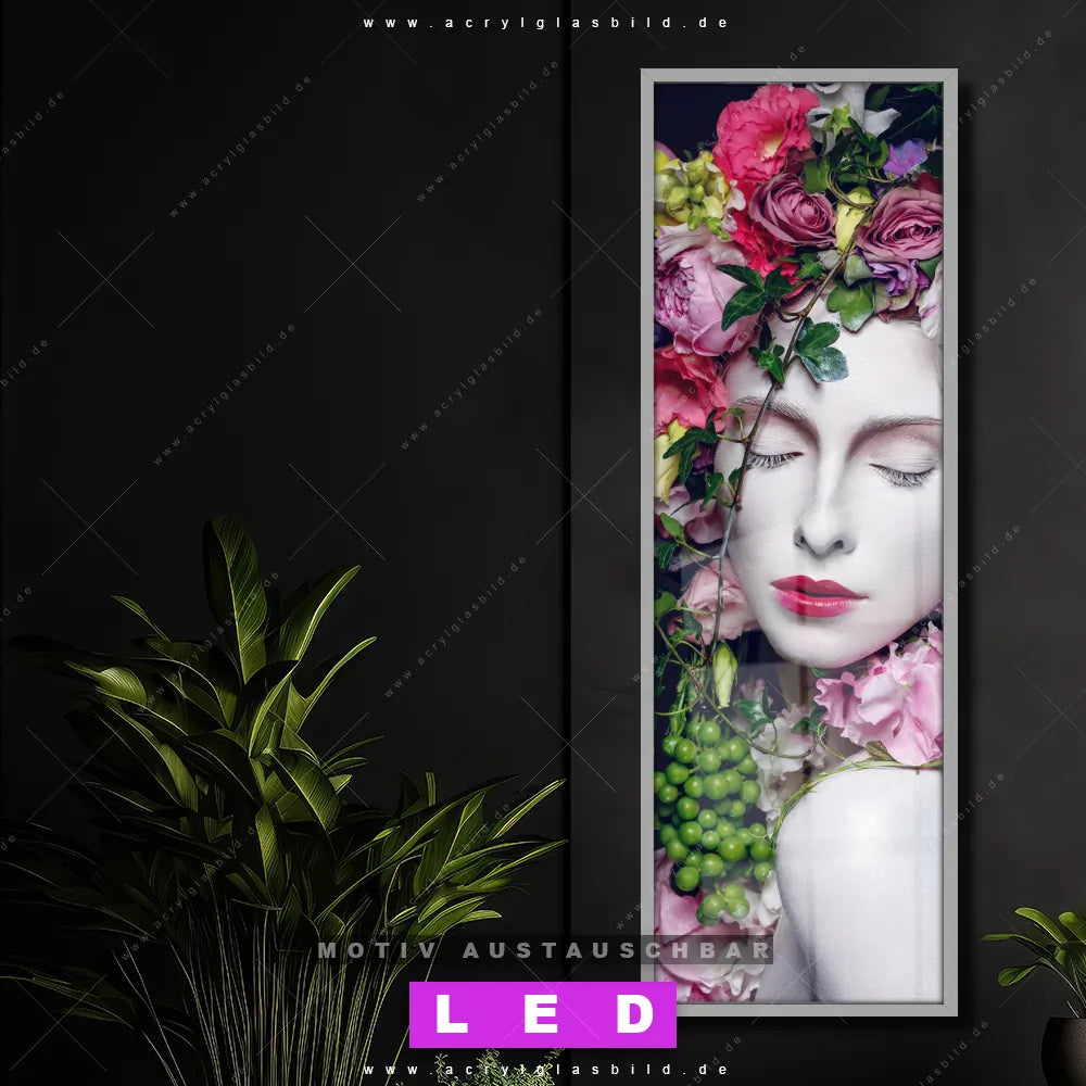 Bist du bereit, deine Wände mit einem dimmbaren LED Bild mit Fernbedienung und optionaler Farbtemperatursteuerung auf das nächste Level zu bringen? Unser Porträts - Menschen, Blumen - Botanik Canvalight® DIA LED Acrylglasbild ist genau das, was du brauchst! Das Wandbild mit LED Beleuchtung im Schmalen Format mit austauschbarer bedruckter Acrylglas-Scheibe Blumen-Königin bringt Licht und Stil in dein Zuhause – und das in null Komma nichts!