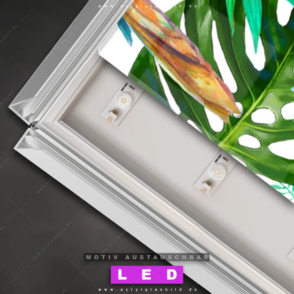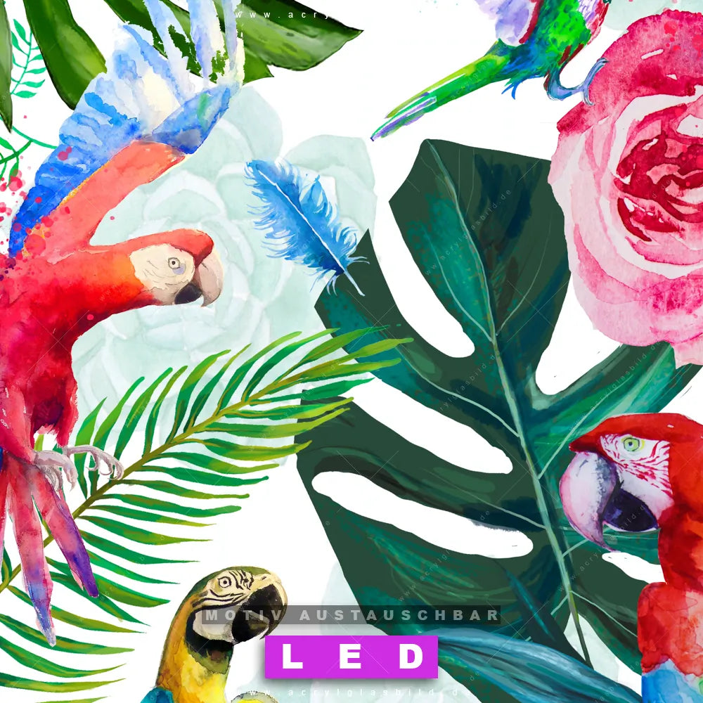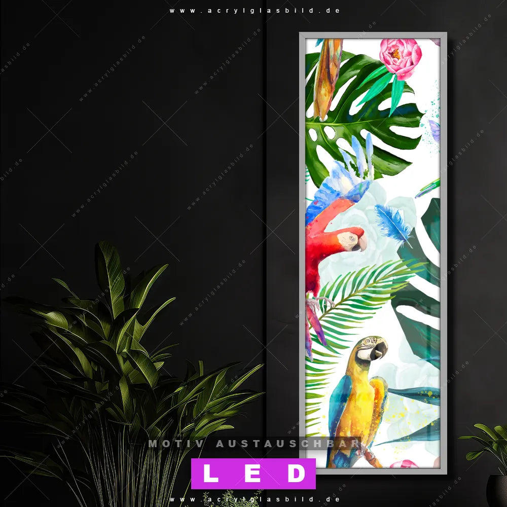LED Acrylglasbild Canvalight® DIA | Blumen & Papageien Aquarell | Schmal