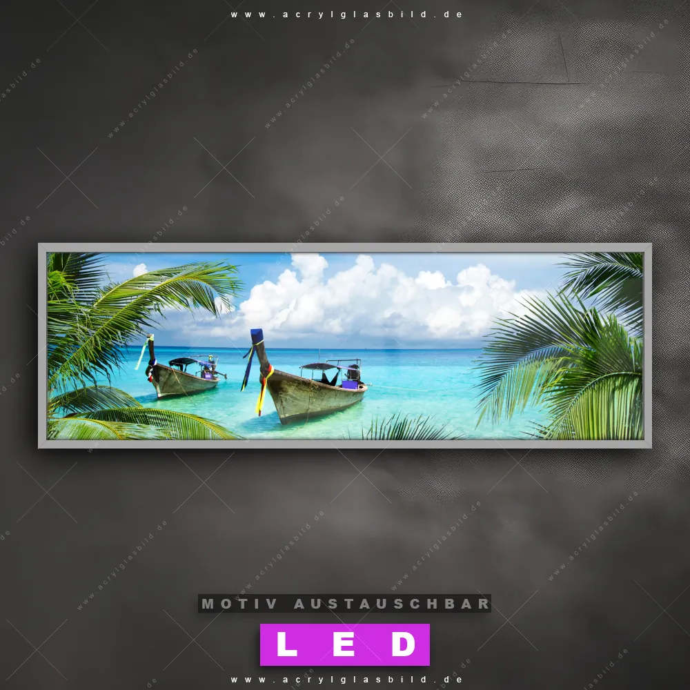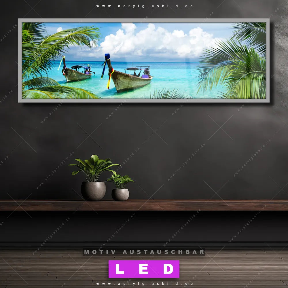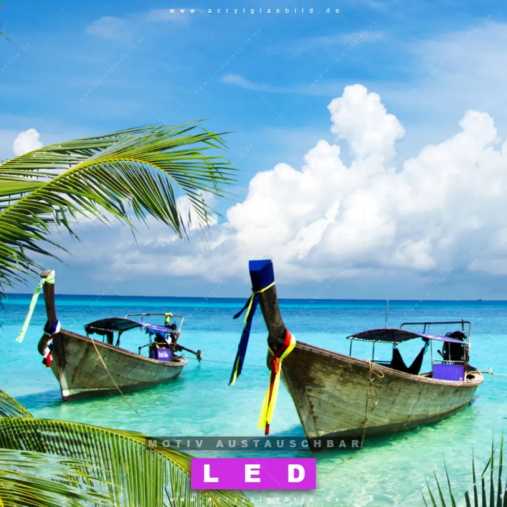 LED Acrylglasbild Canvalight® DIA | Boote im tropischen Meer | Panorama