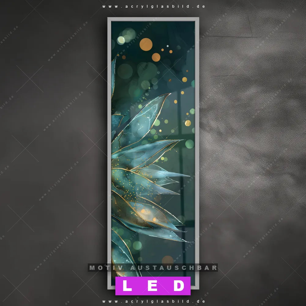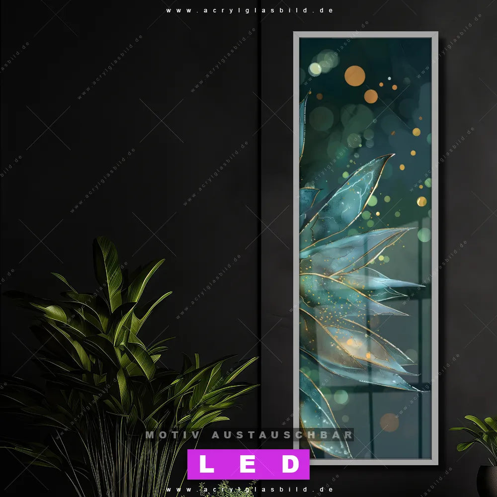 Vergiss dunkle Ecken und langweilige Wände in Arzt - Praxis, Flur - Eingangsbereich, Wohnzimmer - Schlafzimmer! Mit unserem LED Acrylglasbild Canvalight® DIA Magische Blätter wirst du nie wieder im Dunkeln tappen. Suchst du nach einem beleuchteten Wandbild mit Blumen, Sukkulente, Kaktus, Pflanze, Natur, Blüten, Glitzer? Dann ist unser Leuchtbild Leuchtendes Grün mit den strahlenden Motiv-Farben Grün, Gold, Türkis genau das richtige LED Bild für dich. Egal, ob dein Stil minimalistisch oder exotisch ist, dieses LED Leuchtbild im Floral, Abstrakt, Modern Art Stil mit DIA-Klapprahmen und glänzender Front aus Acrylglas passt perfekt zu jeder Einrichtung.