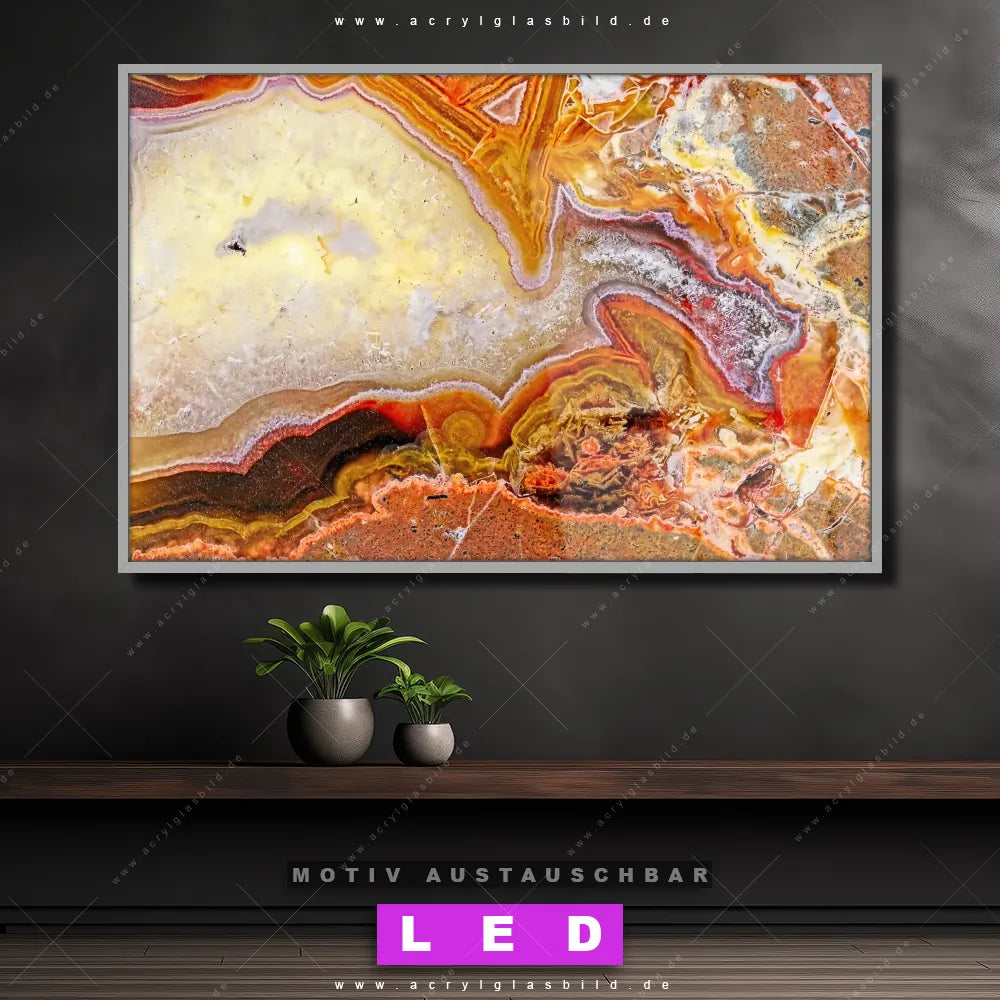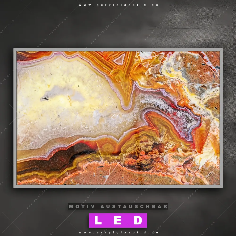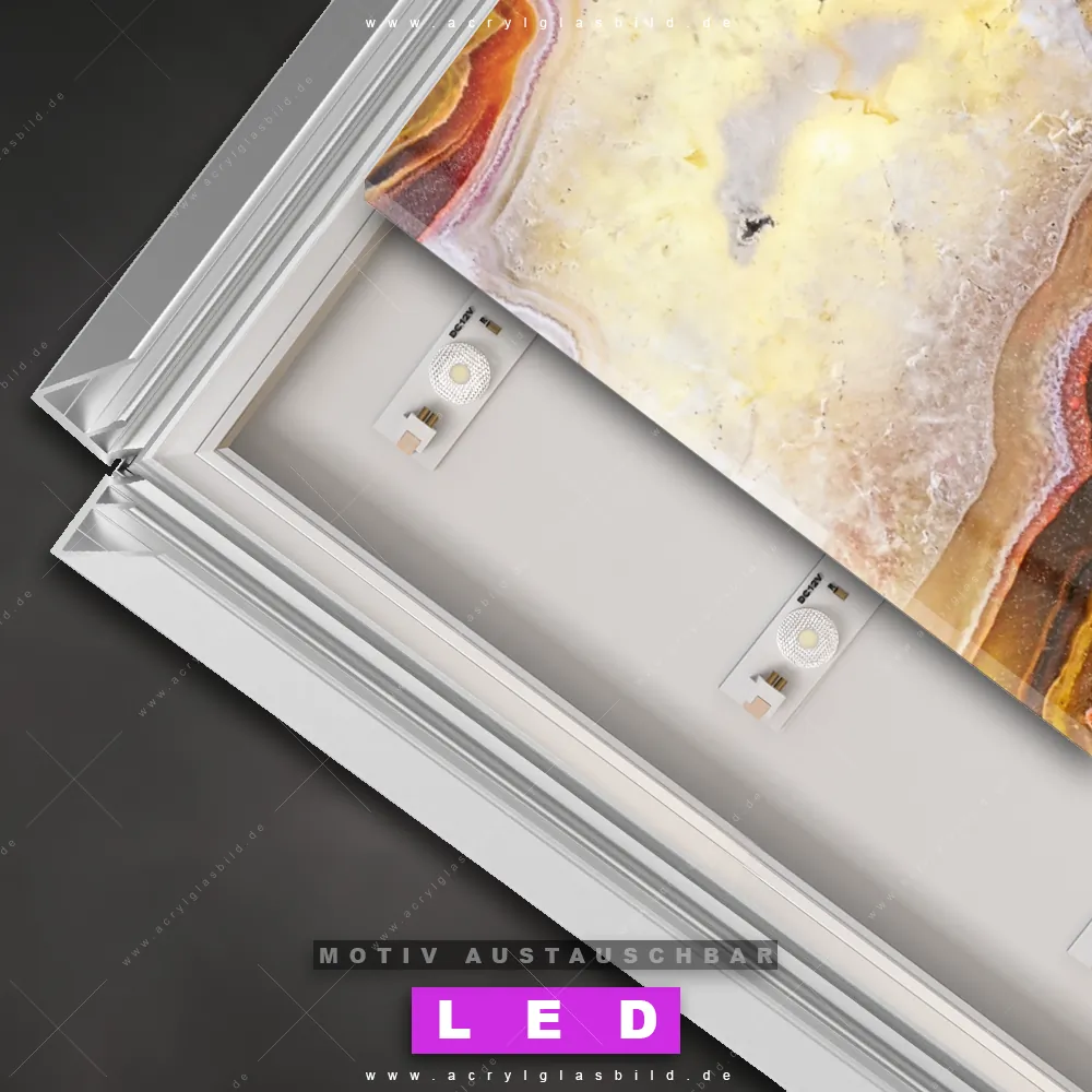Du bist auf der Suche nach einem dimmbaren Muster - Texturen LED Bild mit Fernbedienung und optionaler Farbtemperatursteuerung? Dann haben wir hier genau das richtige Wandbild mit LED Beleuchtung für dich: Unser Canvalight® DIA LED Acrylglasbild Brauner Edelstein im Querformat mit austauschbarer bedruckter Acrylglas-Scheibe. Dieses Leuchtbild bringt sofort Partybeleuchtung in deine Räume!