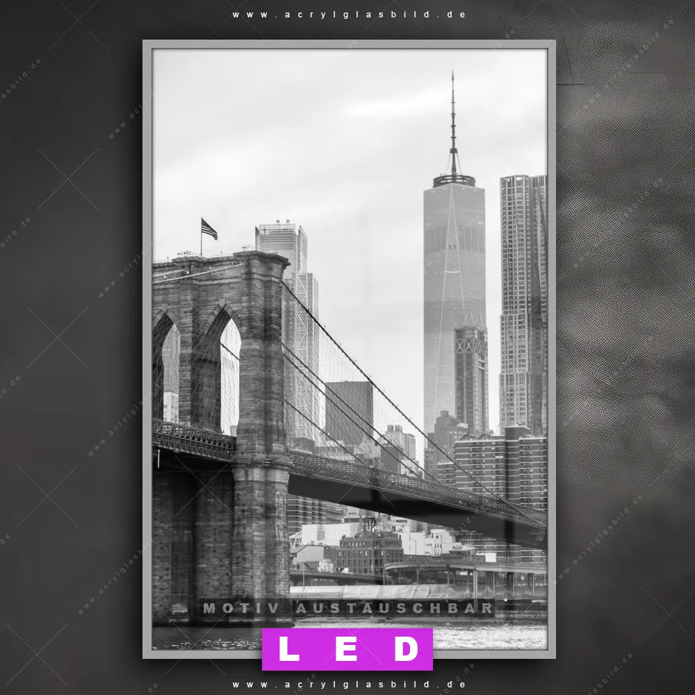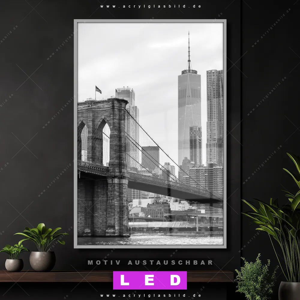 LED Acrylglasbild Canvalight® DIA | Brooklyn Bridge Schwarzweiß | Hochformat