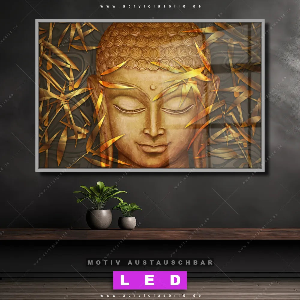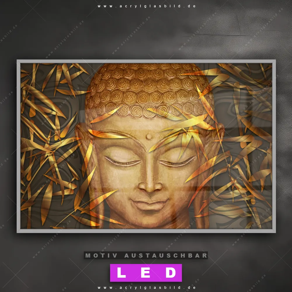 LED Acrylglasbild Canvalight® DIA | Buddha & Bambus in Gold | Querformat