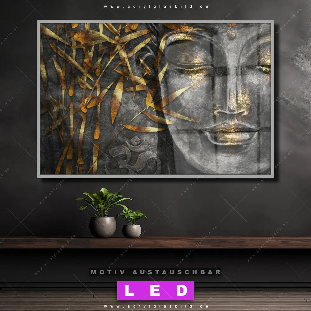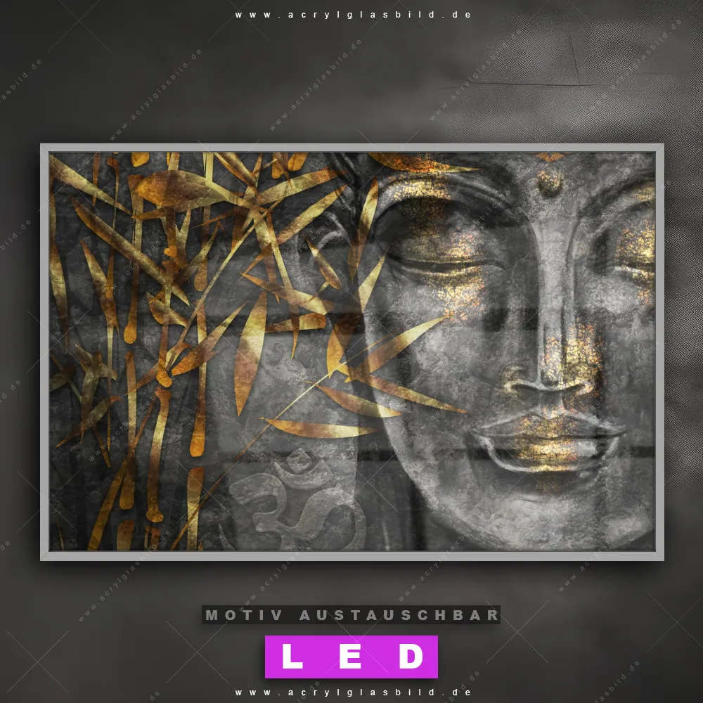 Mit unserem LED Acrylglasbild Canvalight® DIA Buddha in schwarz-gold und seiner genialen LED-Ausleuchtung wirst du nie wieder im Dunkeln auf deinem Sofa herumtappen. Wenn du nach einem beleuchteten Wandbild aus Acrylglas mit Buddha, Buddhismus, Religion, Bambus, Meditation, Yoga für Arzt - Praxis, Wohnzimmer - Schlafzimmer, Büro - Kanzlei, Flur - Eingangsbereich, Friseur - Beauty suchst, ist unser LED Leuchtbild Kopf eines Buddhas in den beeindruckenden Motiv-Farben Schwarz, Gold genau das richtige beleuchtete Wandbild für dich. Gestaltet im Mixed Media, Modern Art Stil, passt dieses LED Wandbild mit DIA-Klapprahmen und glänzender Front aus Acrylglas perfekt zu jedem Einrichtungsstil – sogar zu deinem chaotischen kreativen Durcheinander!