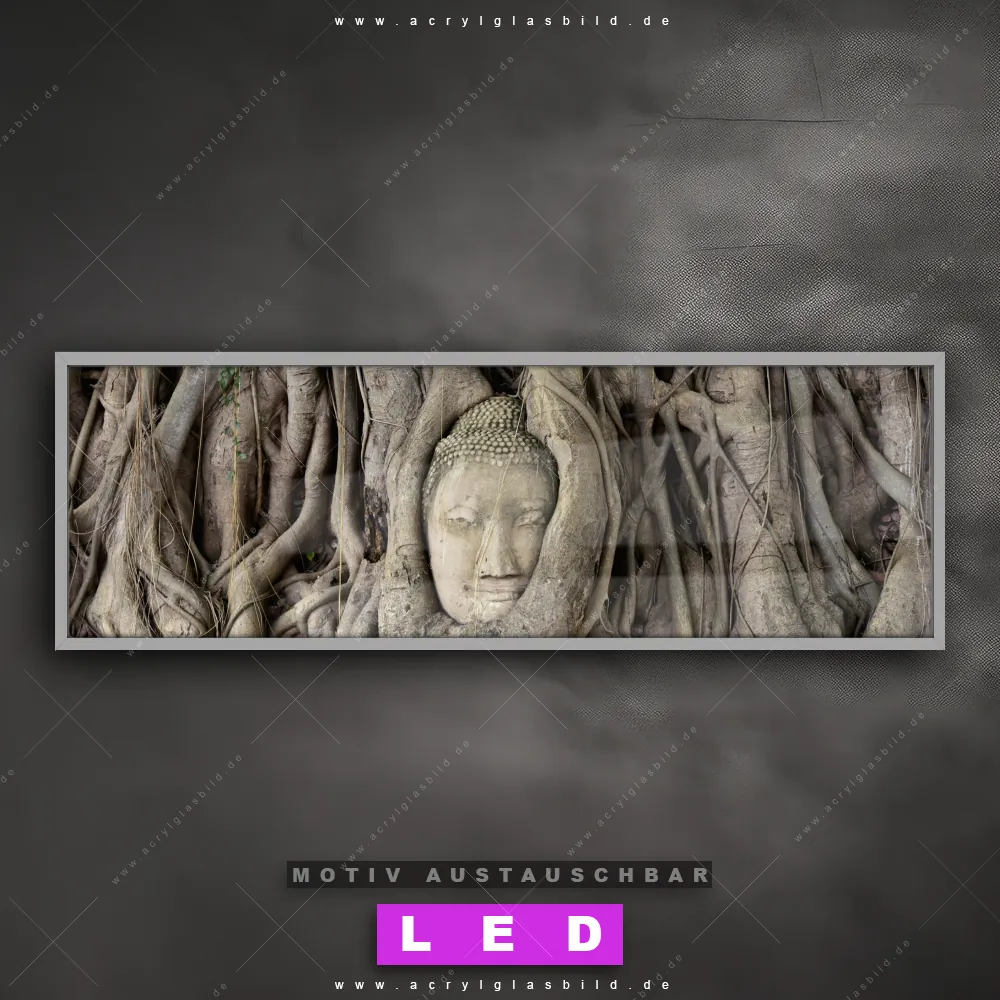 Also, worauf wartest du noch? Verwandle deine Wände mit einem LED Leuchtbild in wahre Kunstwerke und bestelle jetzt das Canvalight® DIA LED Acrylglasbild Wurzeln mit Kopf des Buddhas. Deine Wände werden strahlen, und deine Freunde werden dank der wechselbaren Motive staunen!
