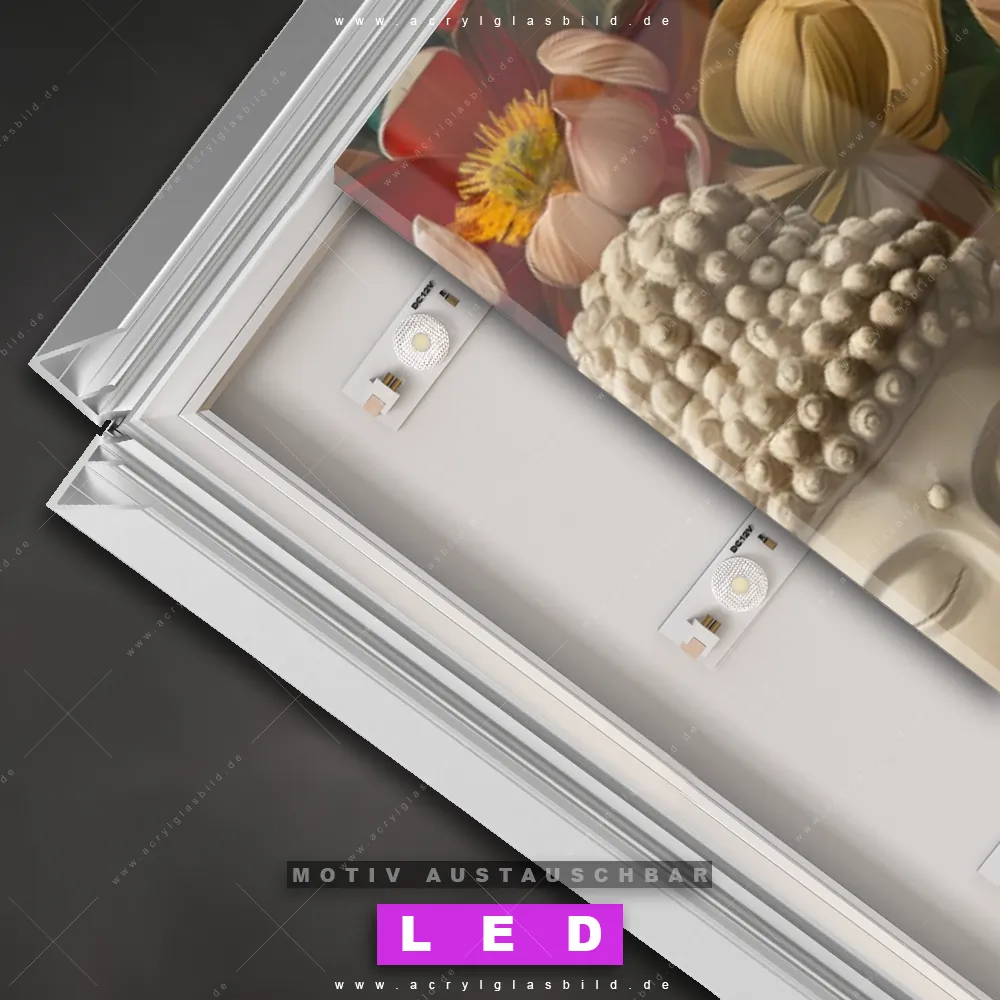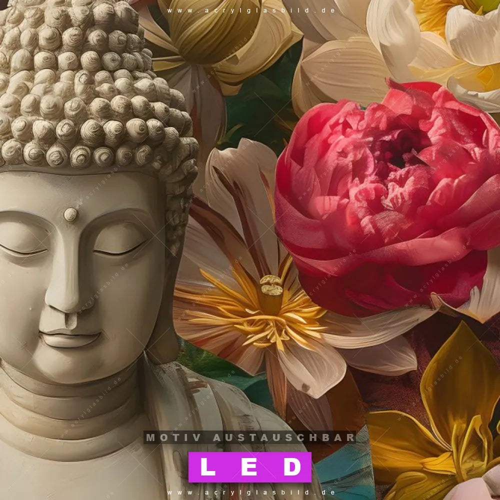 LED Acrylglasbild Canvalight® DIA | Buddha in farbenfrohen Blumen | Schmal