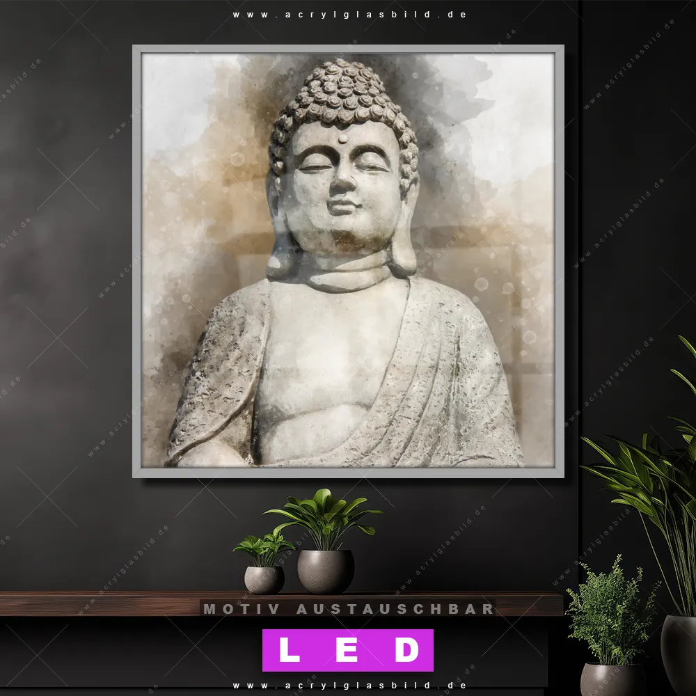 Bist du bereit, deine Wände mit einem dimmbaren LED Bild mit Fernbedienung und optionaler Farbtemperatursteuerung zum Leuchten zu bringen? Wir haben das ultimative Buddha - Feng Shui LED Acrylglasbild Canvalight® DIA für dich! Unser LED Wandbild aus Acrylglas Buddha in Frieden im Quadratischen Format mit austauschbarer bedruckter Acrylglas-Scheibe im DIA-Klapprahmen bringt sofort jede Menge Glanz in deine vier Wände.