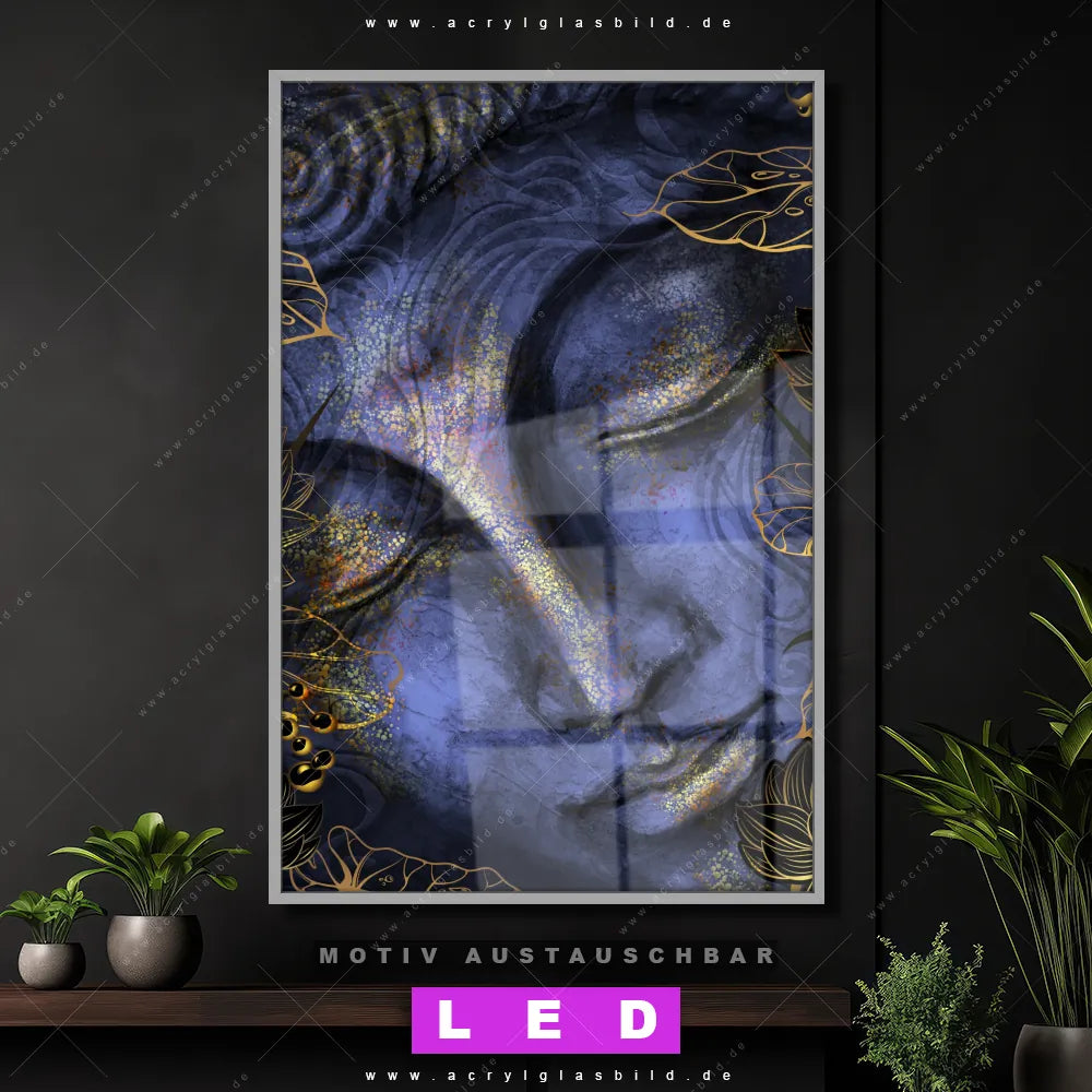 LED Acrylglasbild Canvalight® DIA | Buddha in Gold & Blau | Hochformat