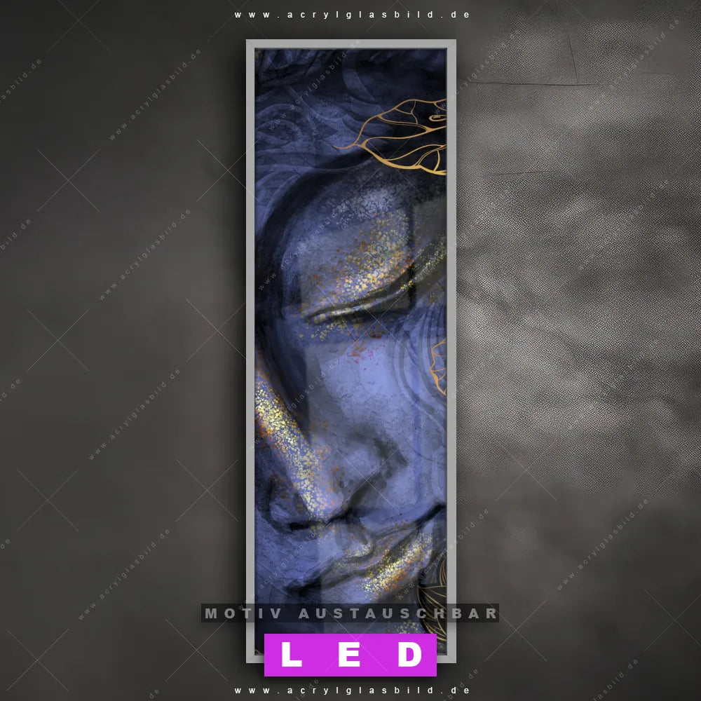 Bist du bereit, deine Wände mit einem dimmbaren LED Bild mit Fernbedienung und optionaler Farbtemperatursteuerung auf das nächste Level zu bringen? Unser Buddha - Feng Shui Canvalight® DIA LED Acrylglasbild ist genau das, was du brauchst! Das Wandbild mit LED Beleuchtung im Schmalen Format mit austauschbarer bedruckter Acrylglas-Scheibe Buddha in Gold & Blau bringt Licht und Stil in dein Zuhause – und das in null Komma nichts!