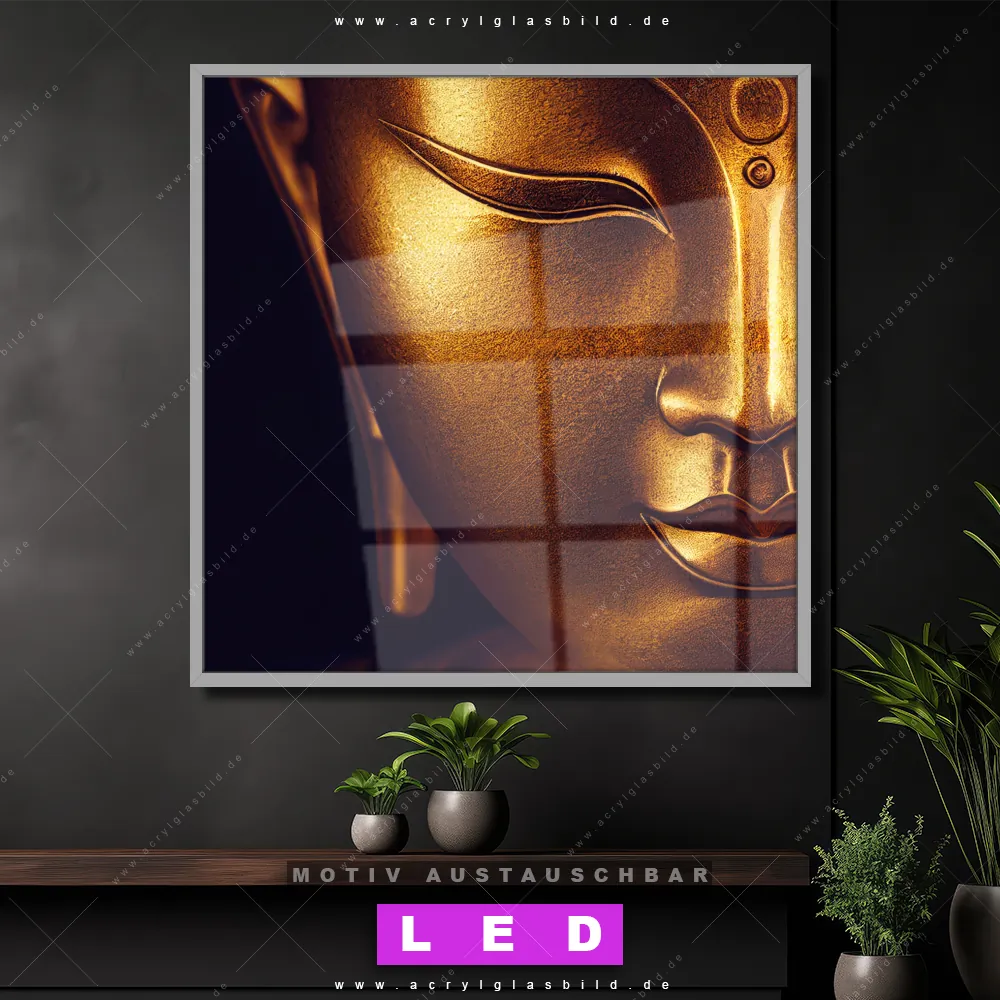 Bist du bereit, deine Wände mit einem dimmbaren LED Bild mit Fernbedienung und optionaler Farbtemperatursteuerung zum Leuchten zu bringen? Wir haben das ultimative Buddha - Feng Shui LED Acrylglasbild Canvalight® DIA für dich! Unser LED Wandbild aus Acrylglas Buddha in Harmonie im Quadratischen Format mit austauschbarer bedruckter Acrylglas-Scheibe im DIA-Klapprahmen bringt sofort jede Menge Glanz in deine vier Wände.