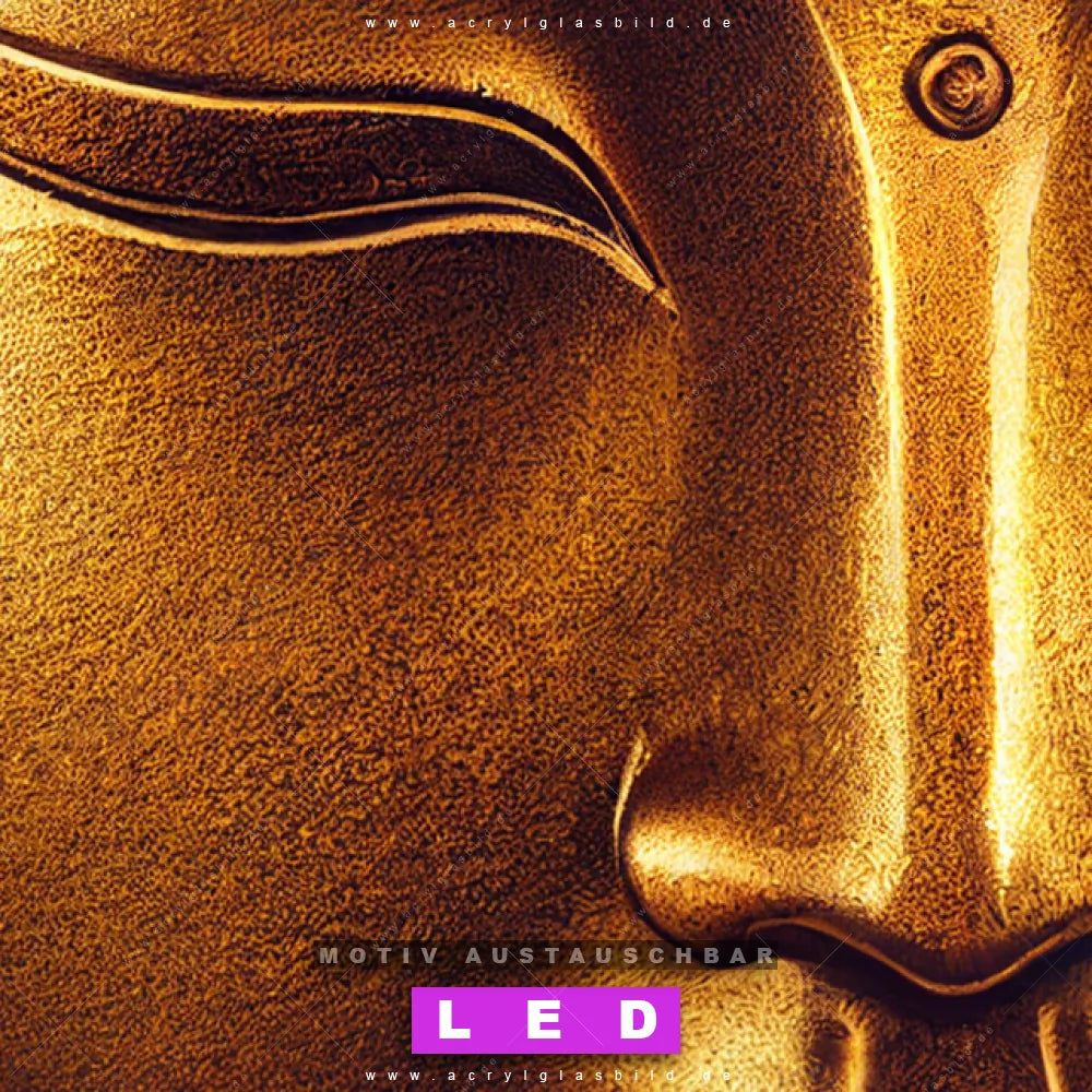 Vergiss dunkle Ecken und Langeweile! Mit unserem Acrylglasbild Kopf des Buddhas und seiner brillanten LED-Ausleuchtung wirst du dich nie wieder in der Dunkelheit verirren. Wenn du auf der Suche nach einem beleuchteten Wandbild aus Acrylglas mit Buddha, Buddhismus, Religion, Feng Shui, Zen, Meditation, spirituell, heilig, Esoterik, Gott, Gesicht bist, ist unser LED Acrylglasbild Canvalight® DIA Buddha in schwarz-braun mit den strahlenden Motiv-Farben Braun, Beige, Gold genau das richtige Leuchtbild für dich. Das im Mixed Media, Modern Art Stil gestaltete LED Bild mit glänzender Front aus Acrylglas passt perfekt zu jedem Einrichtungsstil in Arzt - Praxis, Wohnzimmer - Schlafzimmer, Küche - Esszimmer, Flur - Eingangsbereich, Bar - Gastronomie, Büro - Kanzlei – vom minimalistischen Chic bis zum kreativen Chaos.
