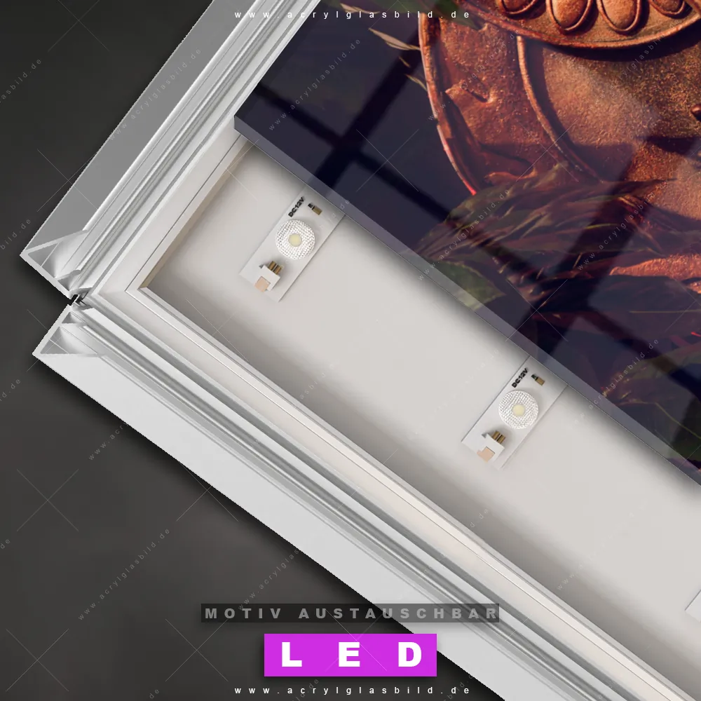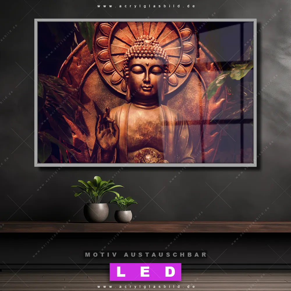 Du bist auf der Suche nach einem dimmbaren Buddha - Feng Shui LED Bild mit Fernbedienung und optionaler Farbtemperatursteuerung? Dann haben wir hier genau das richtige Wandbild mit LED Beleuchtung für dich: Unser Canvalight® DIA LED Acrylglasbild Buddha & Lotusblüte im Querformat mit austauschbarer bedruckter Acrylglas-Scheibe. Dieses Leuchtbild bringt sofort Partybeleuchtung in deine Räume!