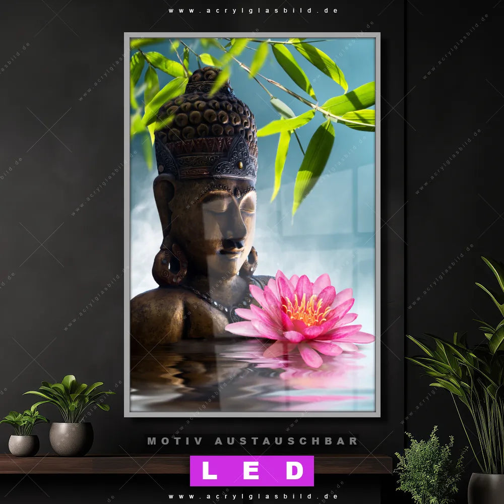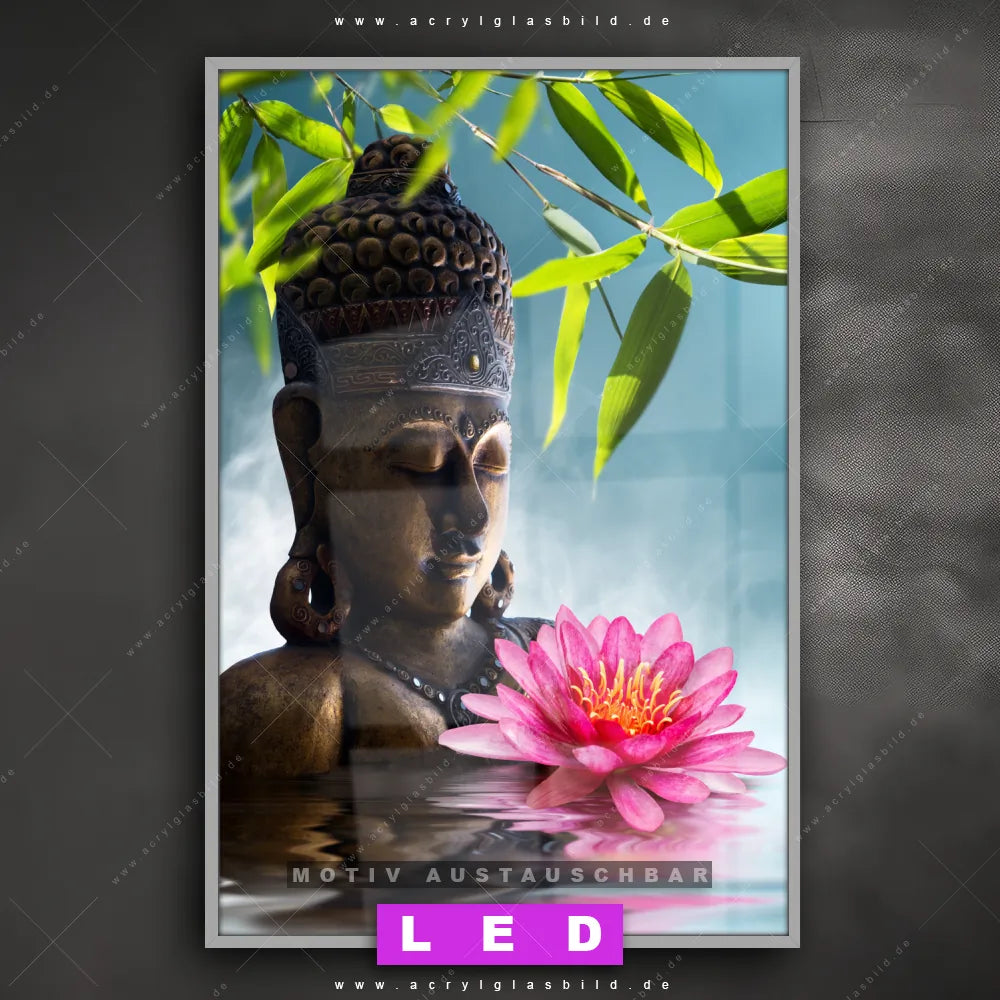 LED Acrylglasbild Canvalight® DIA | Buddha Statue mit Seerose | Hochformat
